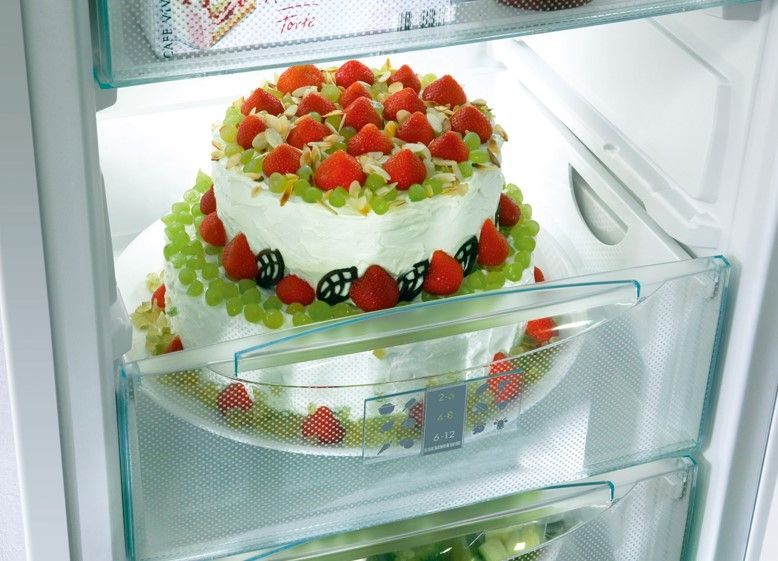 Морозильная камера имеет рабочий объем 119 л и расположена снизу для удобной загрузки. No Frost является системой охлаждения. Она включает в себя четыре пластмассовых ящика и лоток для приготовления кубиков льда. Режим SuperFrost с автоматическим отключением через 65 часов позволяет бережно охладить и подготовить продукты к длительному хранению. Мощность заморозки составляет 11 кг/сутки. Система VarioSpace отвечает за грамотное расположение запасов.