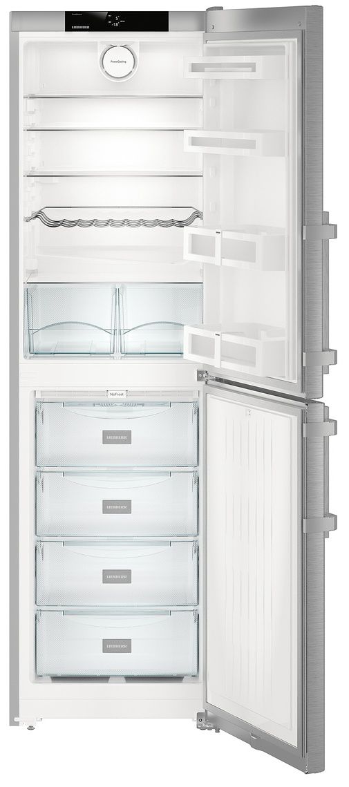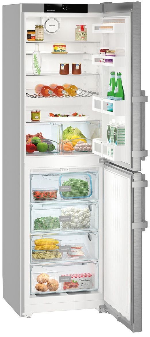 Класс энергопотребления E позволяет холодильнику LIEBHERR CNEF 3915 COMFORT NOFROST сэкономить расход электричества по сравнению с аналогами класса A. Корпус и дверь выполнены из нержавеющей стали повышенной прочности. Особое покрытие SmartSteel спереди не оставляет следов после пальцев. Светодиодное освещение, обладающее повышенной яркостью и увеличенным сроком службы, расположено сверху. Дверной упор находится справа, но есть возможность навесить с удобной стороны, что позволяет с легкостью вписаться в любой дизайн интерьера. Ручка устройства металлическая со встроенным механизмом открывания. Электронное управление просто и понятно в использовании. Вся необходимая информация отображается на 2.4-дюймовым сенсорном монохромном TFT-дисплее, который оснащен индикаторами температуры. Полезный объем холодильного отделения — 221 л. Внутреннее пространство состоит из четырех полок из закаленного стекла с возможностью регулировки, контейнера для овощей и фруктов, подставки для яиц и отсека для консервов и бутылок. Автоматическая система размораживания облегчает уход за прибором. Циркуляционное охлаждение PowerCooling поддерживает комфортный микроклимат и сохраняет содержимое дольше. Гарантия от производителя составляет 24 месяца.