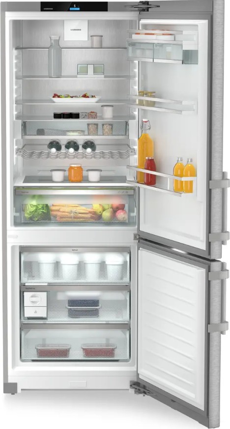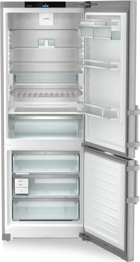 Холодильник Liebherr CNsdd 775i является воплощением современного дизайна и функциональности. Этот двухкамерный аппарат с морозильной камерой, расположенной снизу, имеет стильный серебристый цвет и изготовлен из прочной нержавеющей стали с обработкой SmartSteel, что предотвращает появление отпечатков пальцев. Высота устройства составляет 201.5 см, ширина — 74.7 см, а глубина — 67.5 см, что делает его вместительным и удобным для размещения в кухонном пространстве. Электронная система управления представлена 2.4-дюймовым сенсорным цветным TFT-дисплеем, расположенным за дверью, что позволяет легко и интуитивно настраивать все параметры. Доводчик двери SoftSystem обеспечивает плавное и бесшумное закрывание, а перевешиваемые двери позволяют адаптировать технику под ваши нужды.