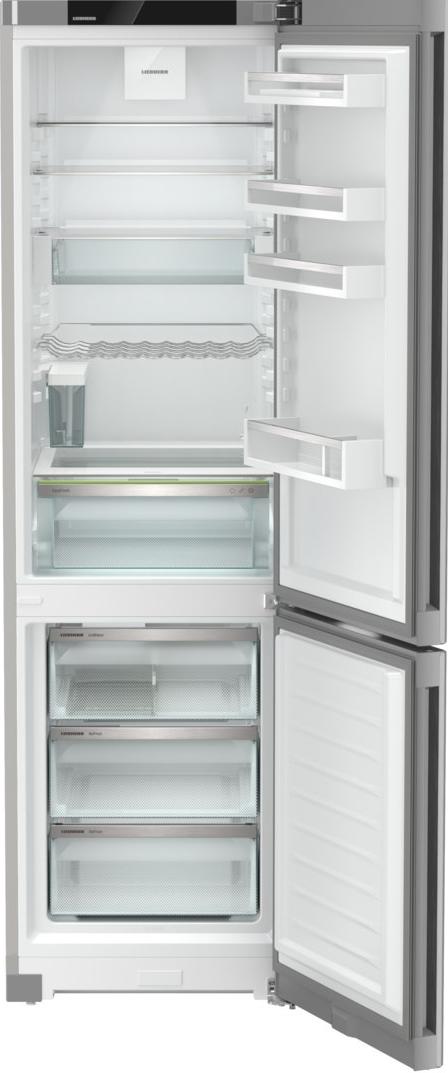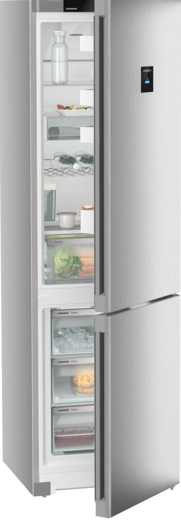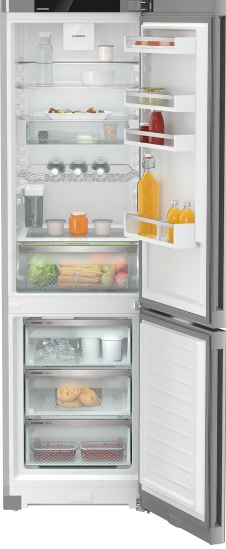 Liebherr CNsfd 5743 — это двухкамерный отдельностоящей холодильник серии Plus, выполненный в строгом серебристом цвете. Он обладает расширенным функционалом, а также прост и удобен в эксплуатации. Принадлежность к линейке BluPerfomance означает, что модель отличается стильным дизайном, увеличенным внутренним объемом, низким уровнем шума во время работы и бережным расходом электроэнергии. Управление осуществляется с помощью сенсорного дисплея. Чувствительные кнопки реагируют на малейшее прикосновение. На дисплее отражается информация об активированном режиме, температуре в холодильном и морозильном отделениях. Чтобы избежать нежелательных внесений изменений в выставленные вами параметры, можно активировать блокировку от детей.