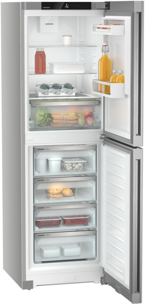 Комбинированный холодильник-морозильник CNsff 5204 из линейки Pure оснащен зоной для хранения овощей и фруктов EasyFresh и системой охлаждения NoFrost. Автоматическое размораживание облегчает уход за внутренним пространством, так как иней и наледь не образуются. Светодиодное освещение на потолке расположено так, чтобы хорошо подсвечивать все полки.