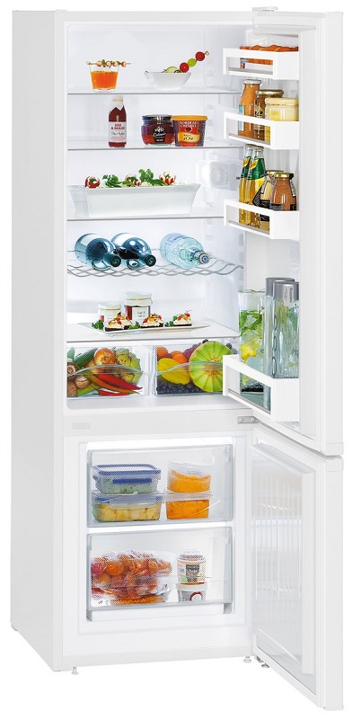 Холодильник Либхер CU 2831 имеет 2 отдельные двери для каждого из отделений. Холодильное оснащено системой автоматического оттаивания, что упрощает уход за прибором. Светодиодная подсветка обеспечивает яркий насыщенный свет, при этом лампы потребляют минимум электроэнергии и не нагреваются при работе, что особенно важно для поддержания стабильного уровня охлаждения. Полки для размещения продуктов выполнены из закаленного стекла и их расположение можно менять в зависимости от необходимости. Для овощей и фруктов предусмотрен специальный контейнер, а для бутылок — держатель. На дверце расположены отделения для консервов, в комплект входит лоток для яиц.
