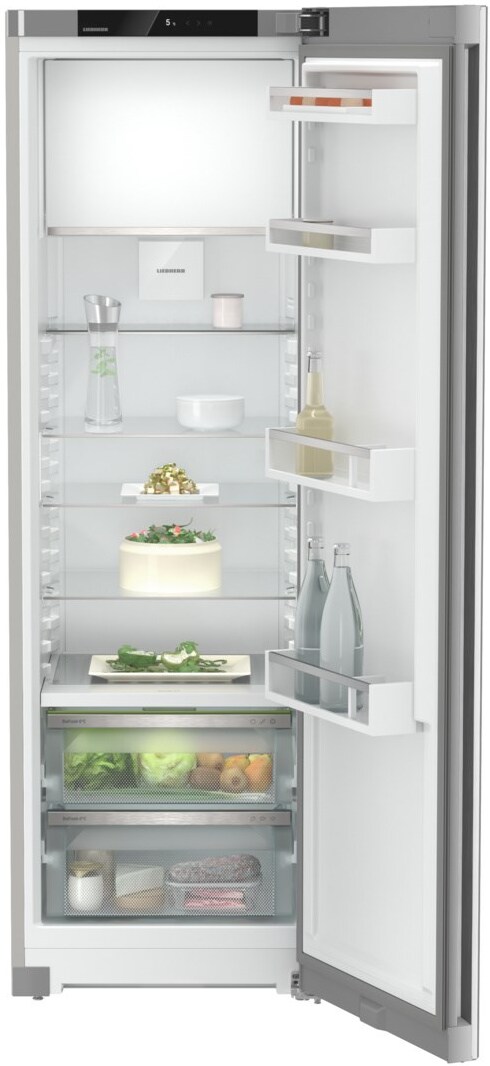 Холодильник Liebherr RBsfe 5221 имеет режим NightMode, он полностью отключит все посторонние звуки, шумы устройства и также смягчит яркость освещения , если вы решите открыть его ночью. Отличное светодиодное освещение, оно расположено вертикально на боковой стенке и освещает все полки камеры. При незакрытой двери произойдет аварийное оповещение мигающим светом и звуковым сигналом.