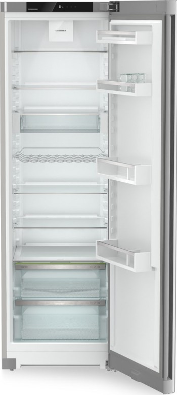 Холодильник Liebherr RSFD 5220 представляет собой однокамерное устройство без морозильника, произведенное в Болгарии. Устройство обладает высоким классом энергопотребления E, что подтверждает его энергоэффективность и экологичность. Внешний вид устройства характеризуется серебристым цветом корпуса, выполненного из стали, и двери, покрытой под нержавеющую сталь. Размеры холодильника составляют 185.5×59.7×67.5 см, что позволяет вместить внутрь 377 литров продуктов. Управление холодильником осуществляется электронно, с помощью сенсорных элементов, расположенных на панели управления за дверью. Информация о температуре в холодильной камере отображается на ЖК-дисплее. Внутреннее освещение камеры осуществляется при помощи светодиодов, что обеспечивает равномерное и яркое освещение.