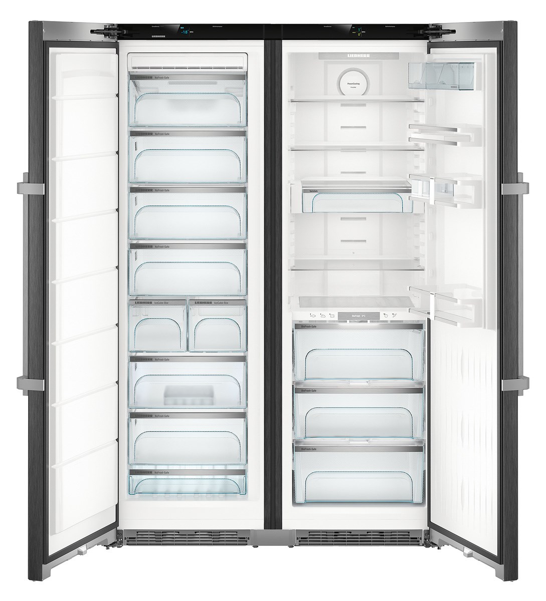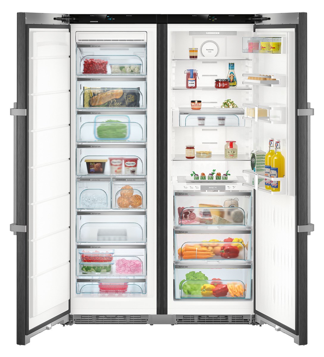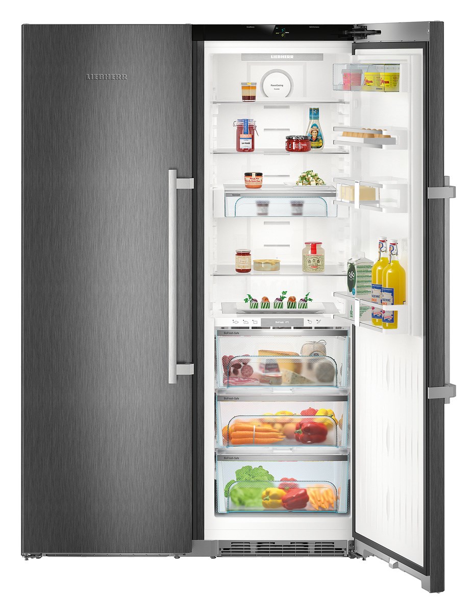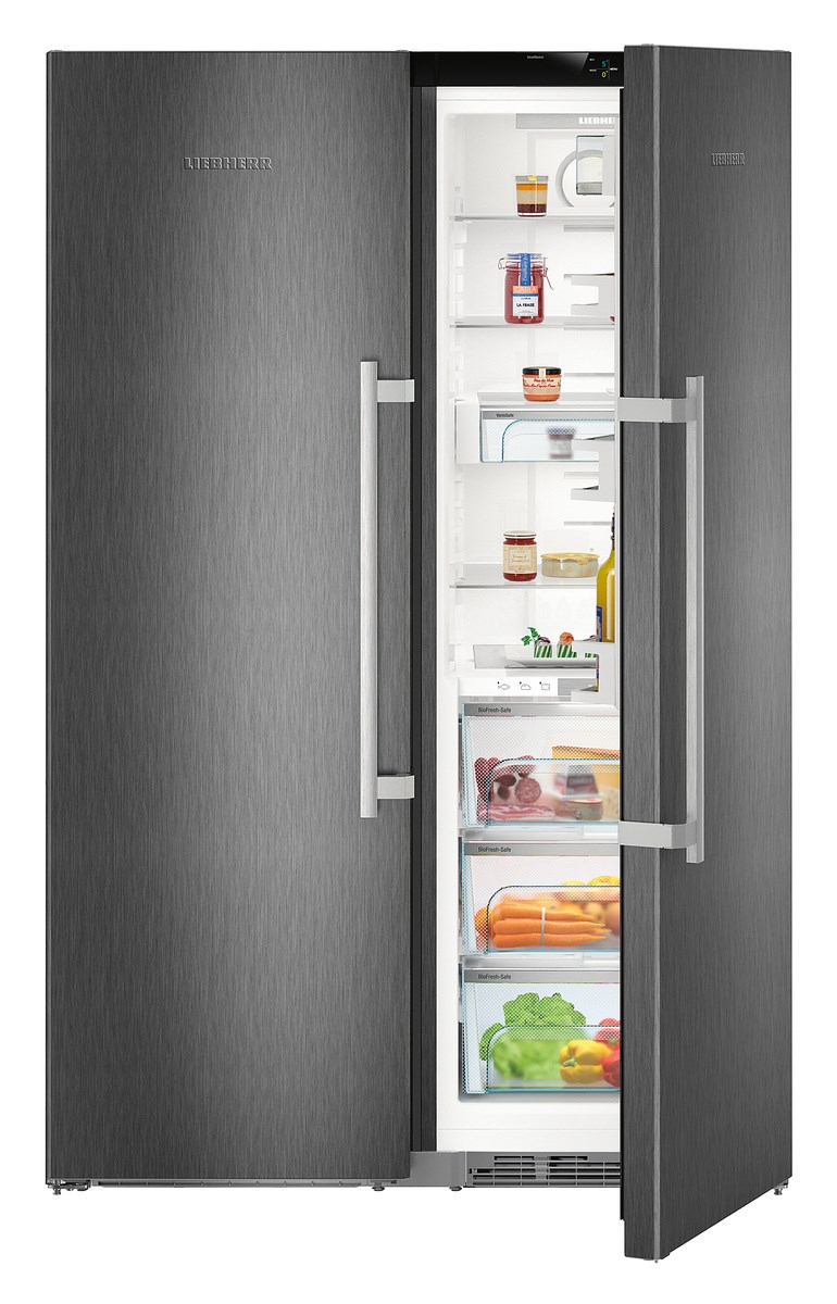 Liebherr SBSbs 8683 Premium BioFresh NoFrost — воплощение немецкой инженерной мысли и современного стиля для тех, кто ценит комфорт и технологичность в каждой детали. Элегантный дизайн HardLine с черным матовым корпусом из легированной стали и дверями из нержавеющей стали с покрытием SmartSteel гармонично вписывается в любой интерьер, подчеркивая статус владельца. Поверхность устойчива к отпечаткам пальцев, что сохраняет безупречный внешний вид даже при интенсивной эксплуатации. Доводчики SoftSystem обеспечивают мягкое закрытие, а ручки с толкателем делают открытие легким и удобным.