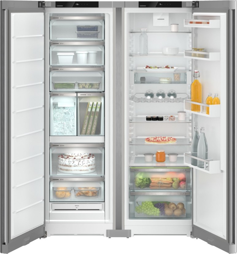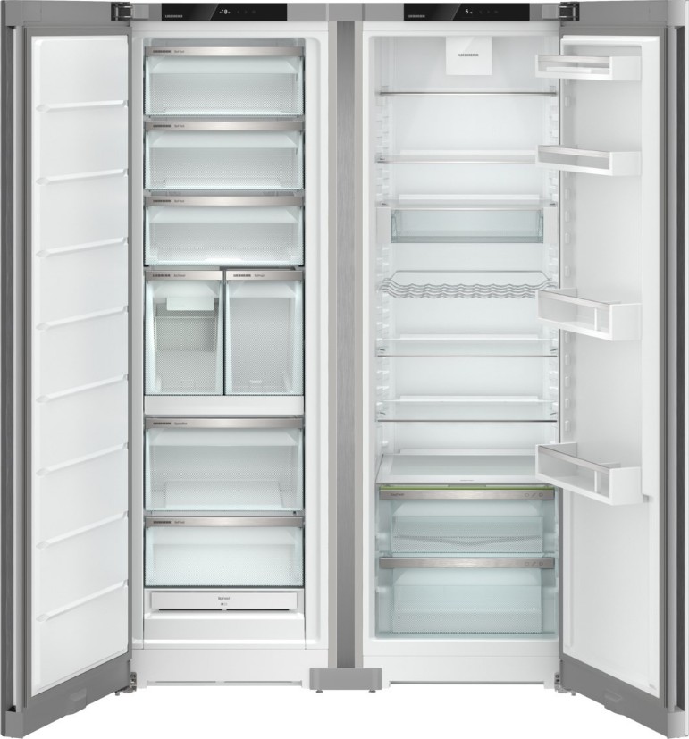Холодильник Liebherr XRFSF 5240 Plus NoFrost представляет собой высокотехнологичное устройство, разработанное с учетом последних тенденций в области холодильного оборудования. Модель выполнена в серебристом цвете, корпус и двери изготовлены из стали, что обеспечивает долговечность и надежность. Устройство оснащено электронной системой управления с жидкокристаллическим дисплеем и сенсорными элементами управления, расположенными за дверью. Индикаторы позволяют контролировать включение питания, режимы SuperCool и SuperFrost, а также температуру холодильной и морозильной камер. Внутреннее освещение холодильной камеры выполнено на светодиодах, что обеспечивает яркое и равномерное освещение.