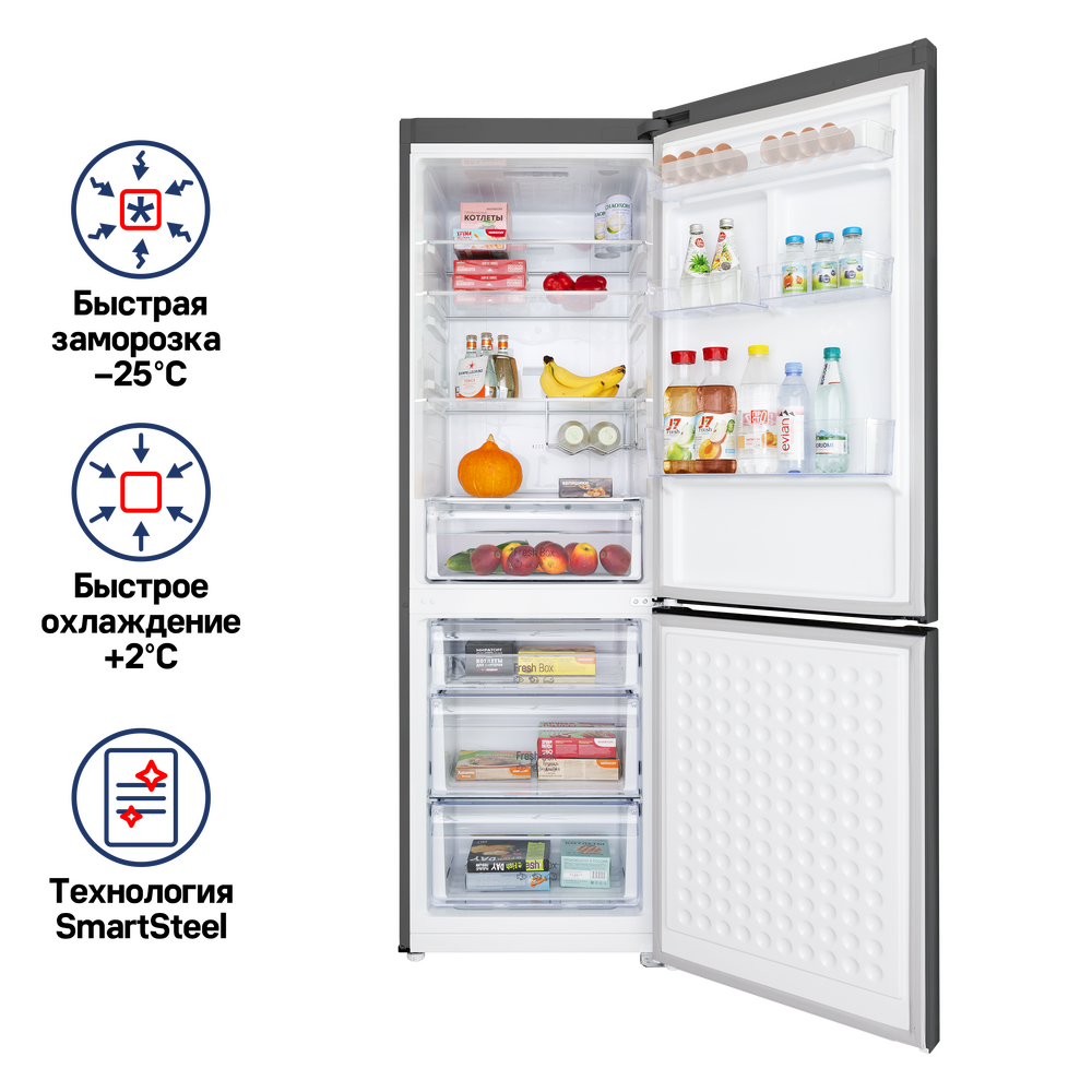 Современный двухкамерный холодильник высотой 185 см с сенсорным управлением MFF187NF10 - новые технологии для хранения.