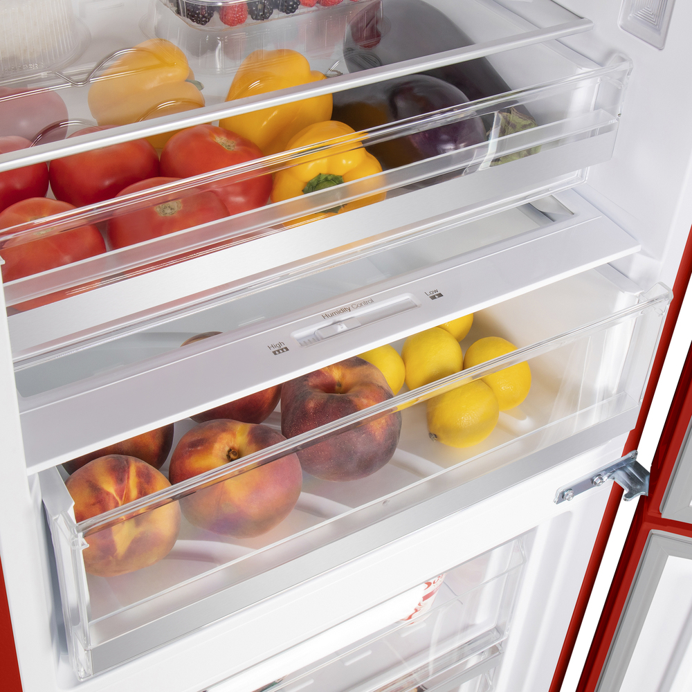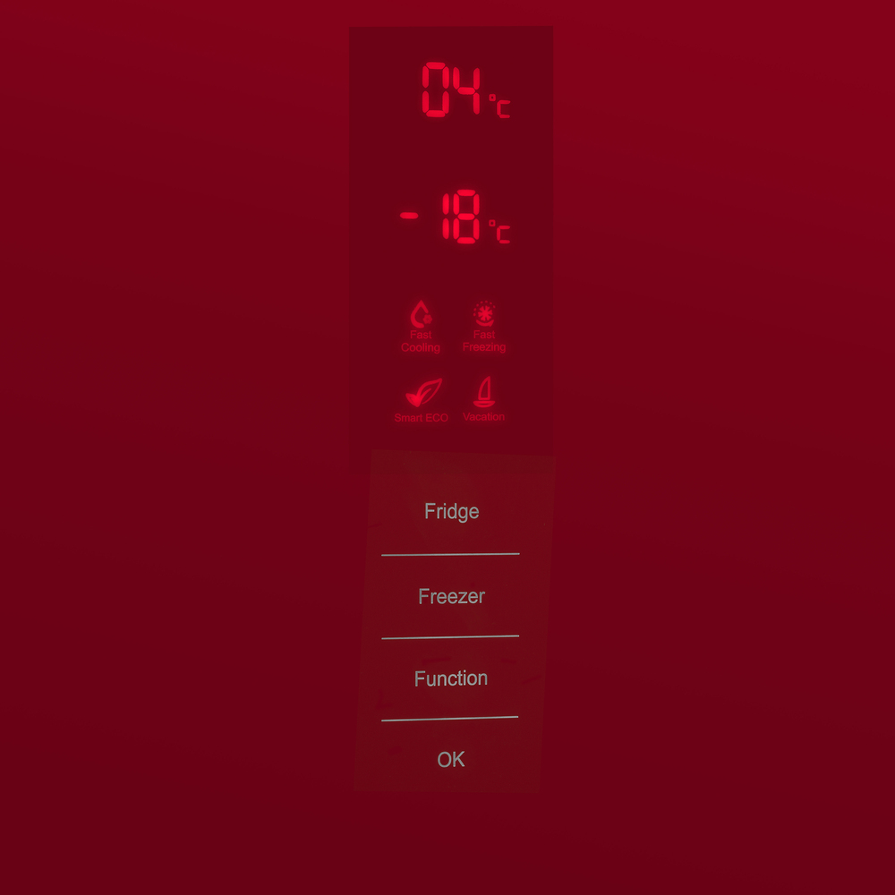 Современный двухкамерный холодильник TOTAL NO FROST шириной 60 см с инверторным компрессором, сенсорной панелью управления. Фасад выполнен из закаленного стекла.