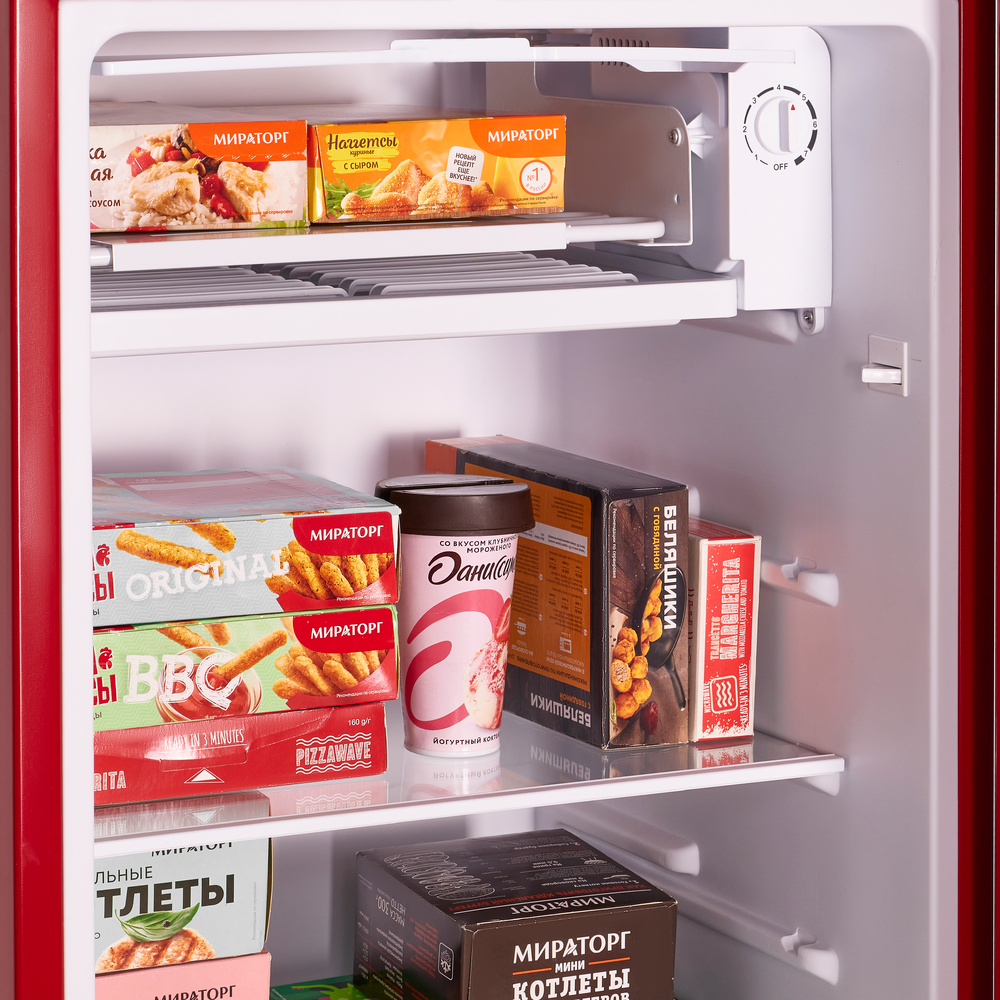 Компактный холодильник в ретро-стиле с встроенной камерой охлаждения обеспечит максимальную свежесть продуктов. 7 температурных режимов для эффективного охлаждения и заморозки ваших продуктов.