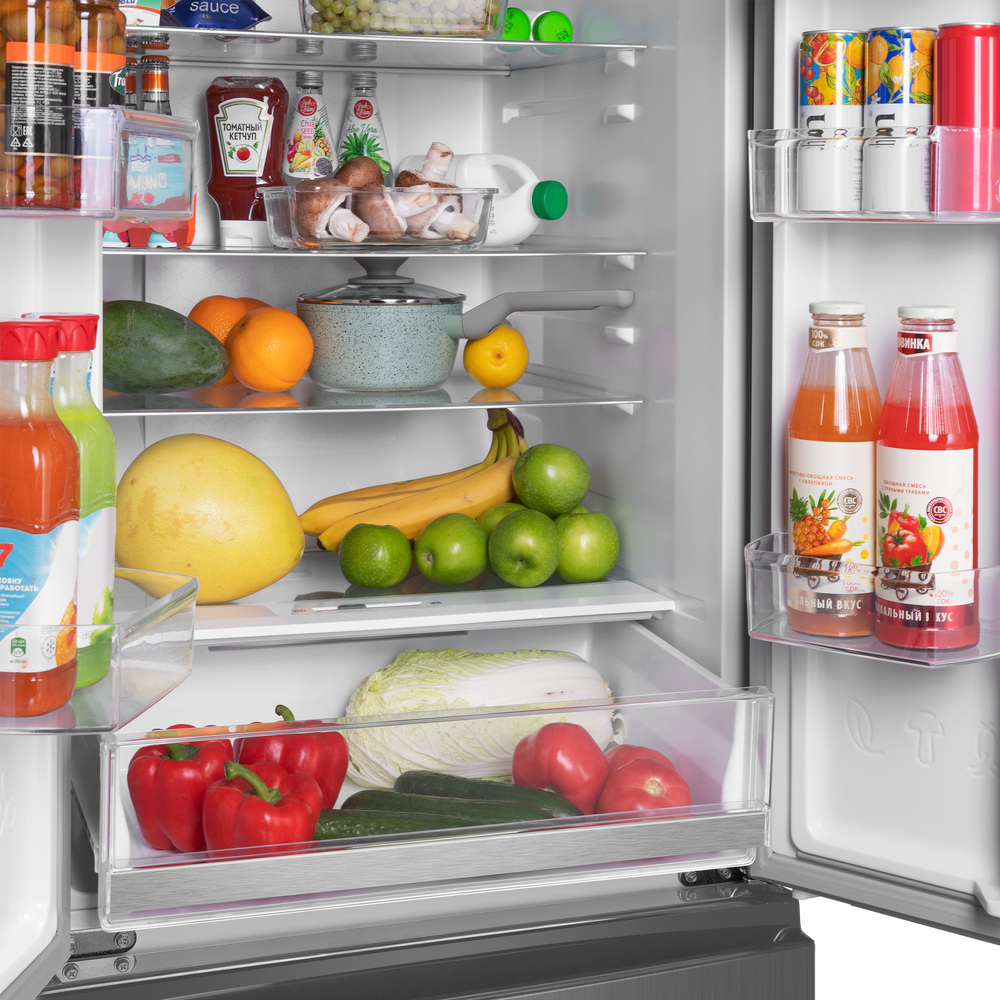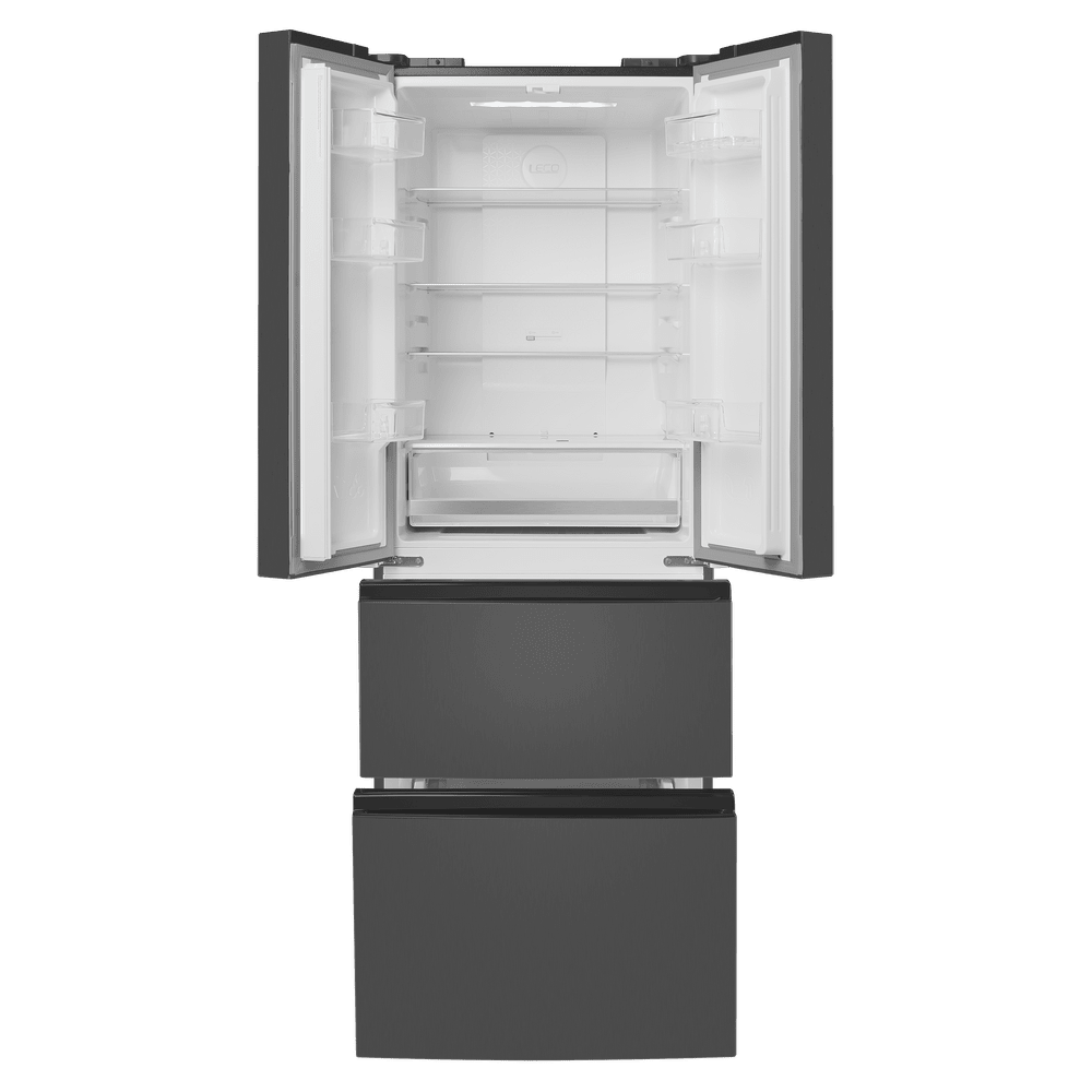 Вместительный холодильник French Door шириной 65 см с инверторным компрессором и сенсорным управлением с дисплеем не требует ручной разморозки благодаря технологии TOTAL NO FROST. Фасад выполнен из металла.