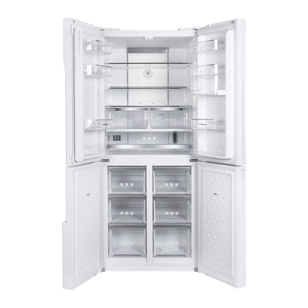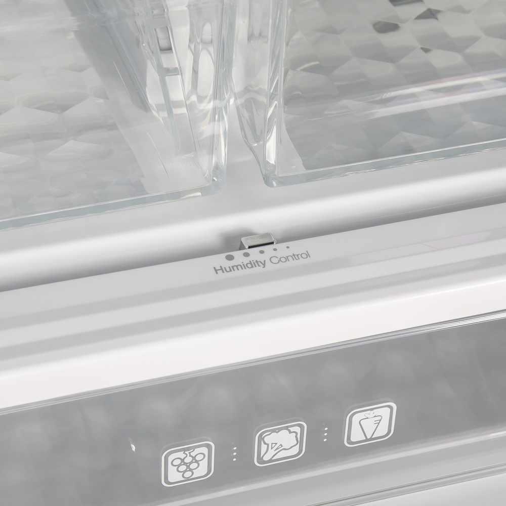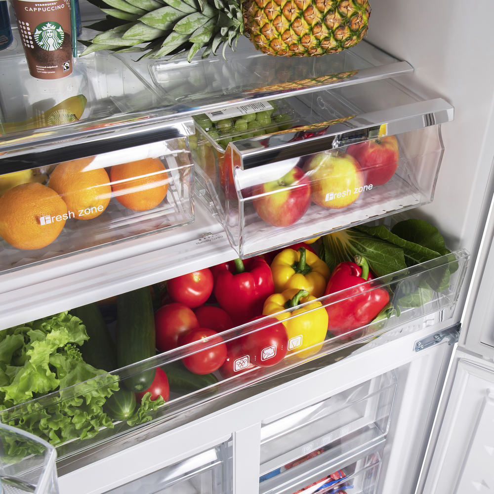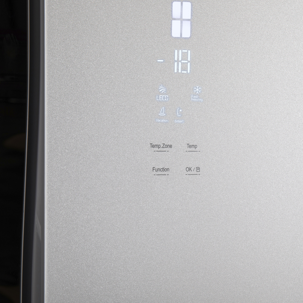 Трехкамерный холодильник Cross Door объемом 460 л с инверторным компрессором и сенсорным управлением. Фасад выполнен из закаленного стекла