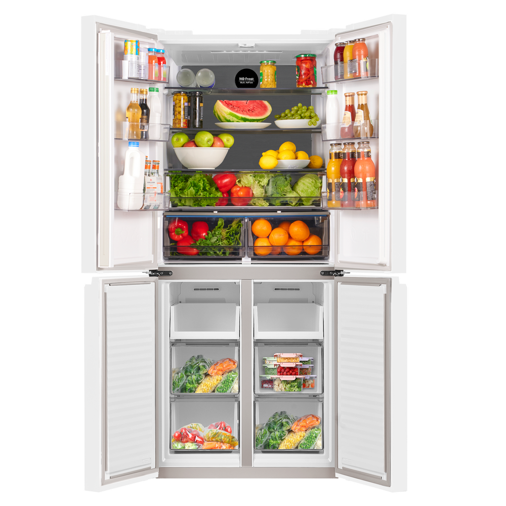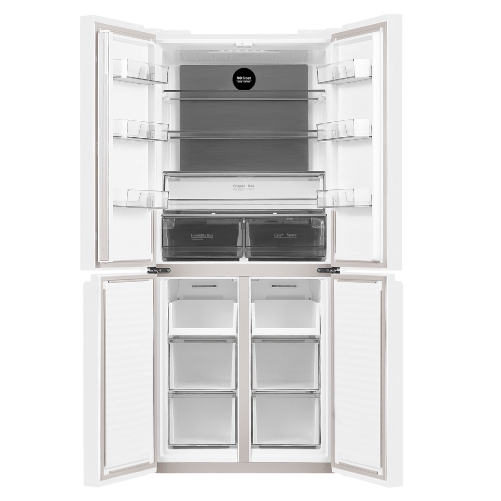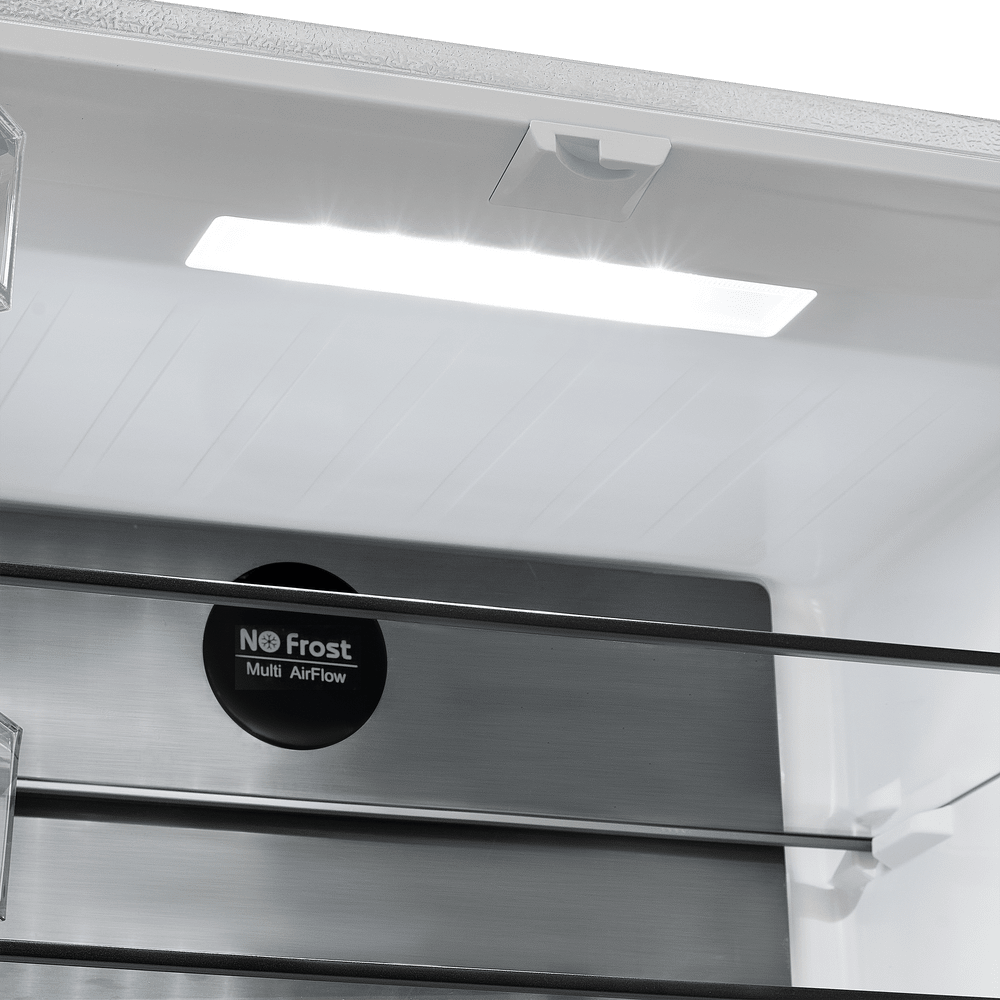 Трехкамерный холодильник Cross Door шириной 78 см с инверторным компрессором и сенсорным управлением с дисплеем не требует ручной разморозки благодаря технологии TOTAL NO FROST. Фасад выполнен из закаленного стекла.