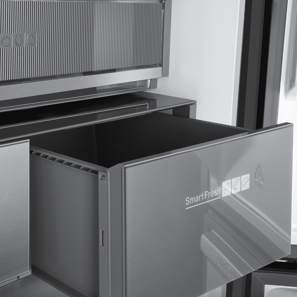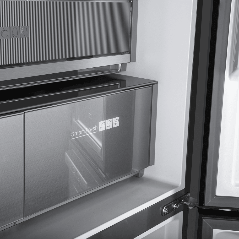 Премиальный холодильник Cross Door серии KITFit с инверторным компрессором и сенсорным управлением с дисплеем не требует ручной разморозки благодаря технологии TOTAL NO FROST. Разработан специально для универсальной установки: может быть как отдельностоящим, так и встроенным.