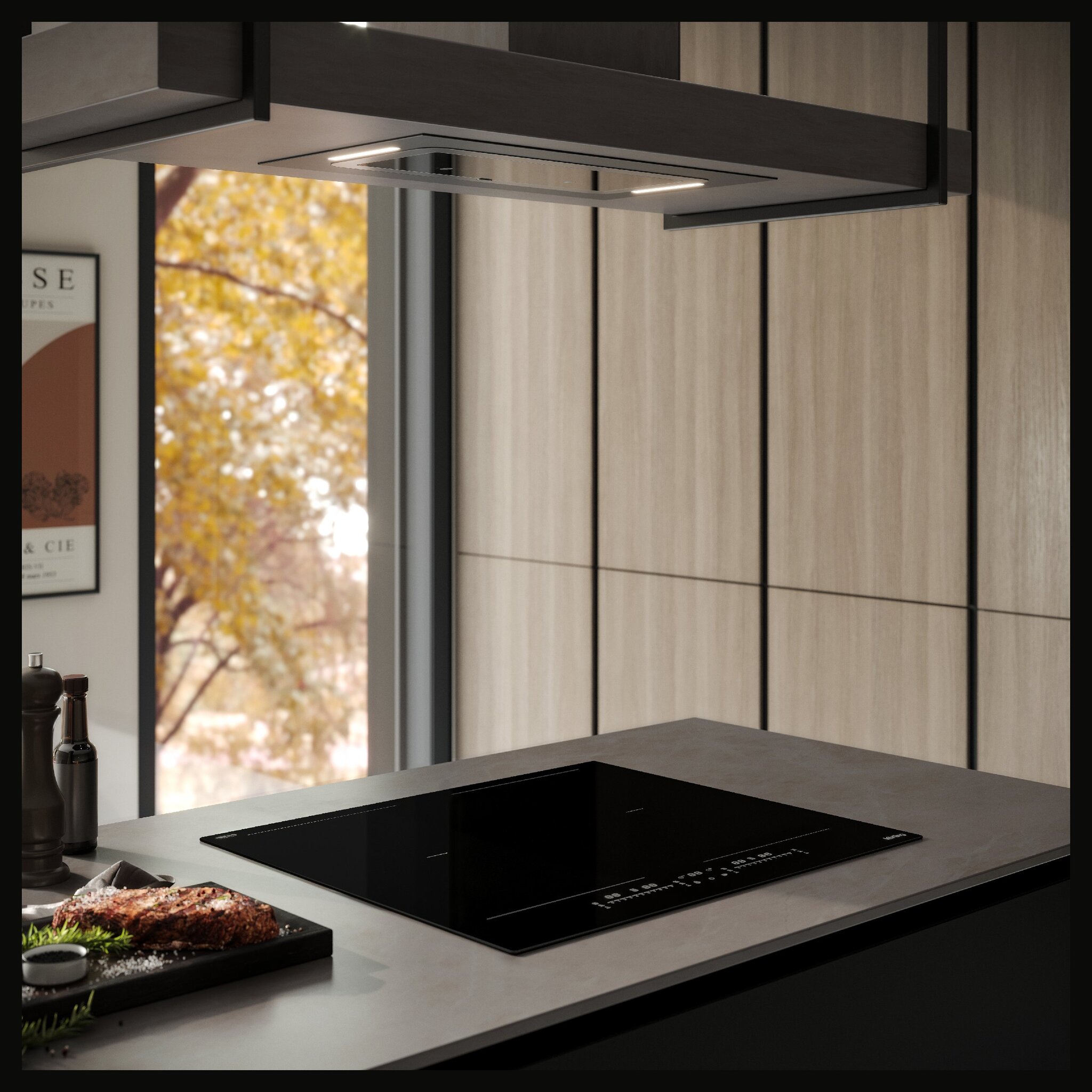 Управлять вытяжкой можно как с ее контрольной панели, так и с варочной поверхности, без необходимости повторного соединения устройств. - 2 отдельных сенсора 2 отдельных сенсорных слайдера для левой и правой зон нагрева
