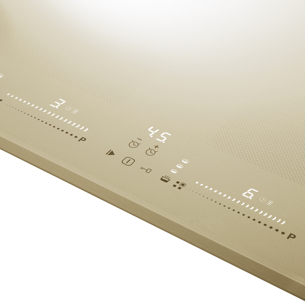 Индукционная варочная поверхность с технологией непрерывного нагрева и двумя Flex Zone. Итальянская стеклокерамика ILVA Glass (в черном цвете) и Японская стеклокерамика Nippon Glass (в бежевом цвете).