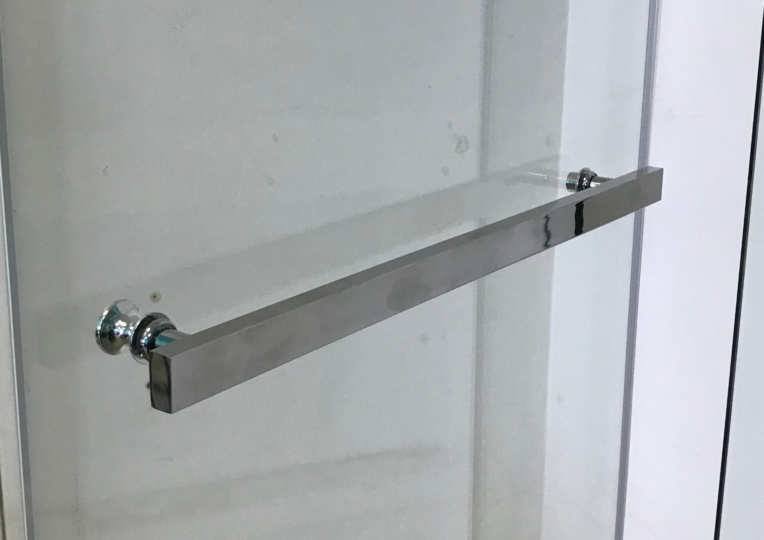 - Стеклянная полка с рамой по краю из нержавеющей стали,