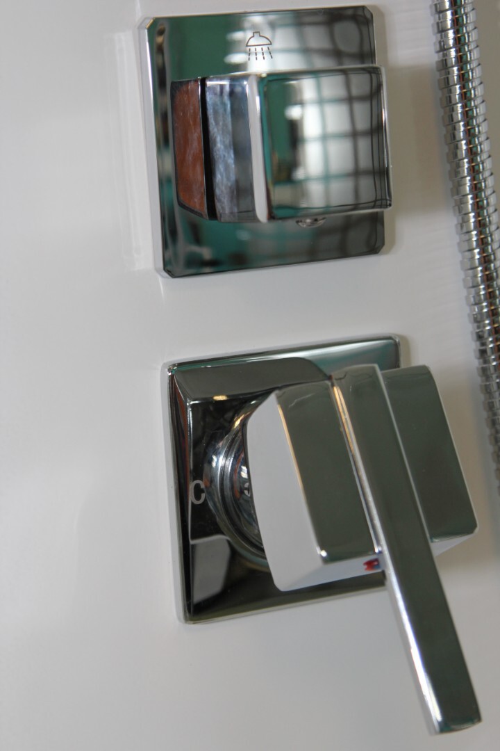 - Смеситель и ручной душ — квадратной формы,
