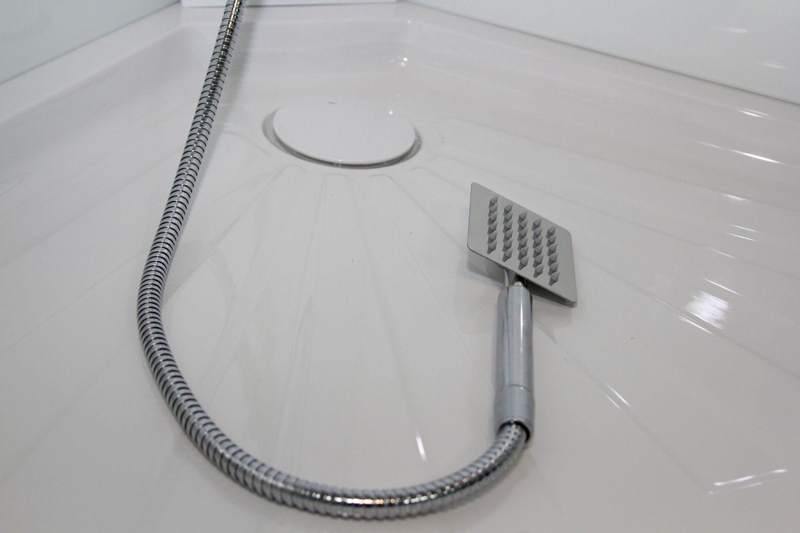 - Поддон — белый из ABS- пластика, с бортиком по периметру,
