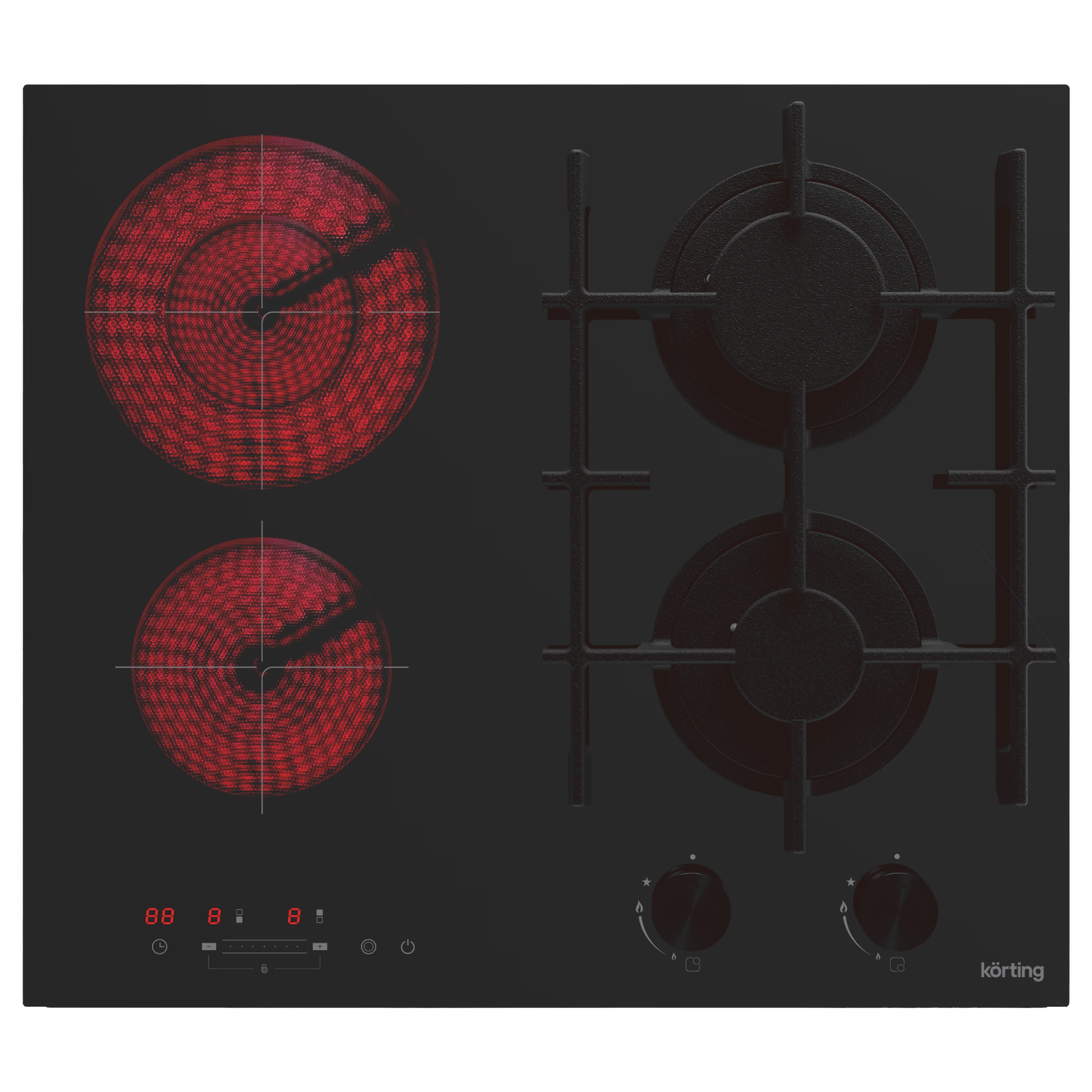Сенсорное управление «Slider Touch Control» Korting предлагает сенсорное управление варочных поверхностей нового поколения. Просто проведите пальцем по шкале сенсорного дисплея, чтобы выбрать нужную температуру или сразу нажмите на нужный вам режим. Вы можете полностью контролировать процесс приготовления всего одним нажатием на сенсор, теперь управление варочной панелью стало легким и понятным. HiLight Зоны нагрева Korting оборудованы современными нагревательными элементами HiLight. В этих конфорках в качестве нагревательного элемента применяется уложенная змейкой лента из высокоомного сплава, конфорка достигает установленной рабочей температуры буквально за считанные секунды, позволяет плавно регулировать мощность, излучаемое тепло очень равномерно распределяется по всей рабочей зоне. Индикация остаточного тепла Световой индикатор в варочных поверхностях Korting горит, пока температура соответствующего нагревательного поля не понизится до 60°С. Это можно также использовать для подогрева блюд при уже выключенной варочной панели, что позволяет экономить электроэнергию, а так же сообщит когда можно приступать к очистки поверхности. Электроподжиг Вам больше не придется пользоваться спичками и зажигалками. Система «Электроподжиг» от Körting очень удобна и абсолютно безопасна. Просто поверните и нажмите регулятор — конфорка автоматически зажжется. Чугунные держатели для посуды Держатели из чугуна эргономичны и очень устойчивы. Вам будет удобно готовить на поверхностях Körting, а риск падения кастрюль и пролива жидкостей сводится к минимуму. Металлические поворотные регуляторы Поворотные регуляторы газовых варочных поверхностей Korting выполнены из металла, что создает профессиональный стиль и препятствует их нагреву. Газ-контроль Во всех моделях Körting установлена система безопасности «Газ-контроль». Данная функция перекрывает подачу газа в случае, если конфорка случайно погаснет. Таймер Электронный таймер поможет установить время продолжительности приготовления, после которого варочная поверхность остановит свою работу. Электронный таймер позволяет устанавливать акустический сигнал, который подается по истечению заданного времени даже, если варочная панель не находится в режиме приготовления. Установите временной отрезок для приготовления блюда и занимайтесь своими делами, в нужное время таймер сам выключит зону нагрева или оповестит Вас об окончании временного промежутка. Функция «Защита детей» Korting подумал о безопасности ваших малышей на кухне! Включив функцию «Защита детей» панель управления заблокируется, и маленький непоседа не сможет включить поверхность, это позволит быть уверенным, что не случится беды с подрастающими поварятами.