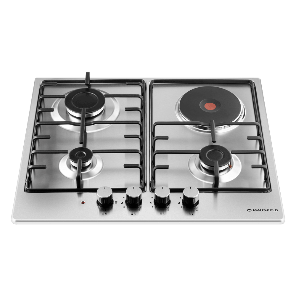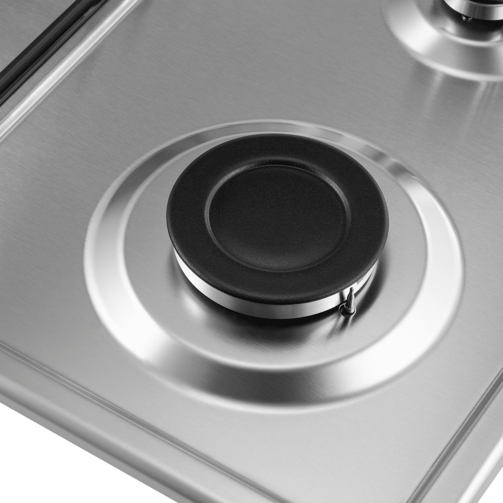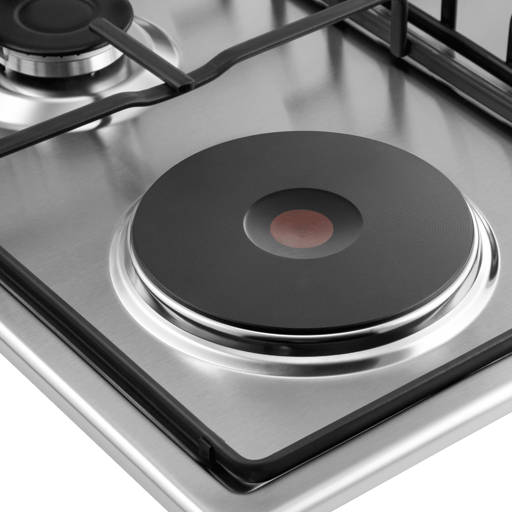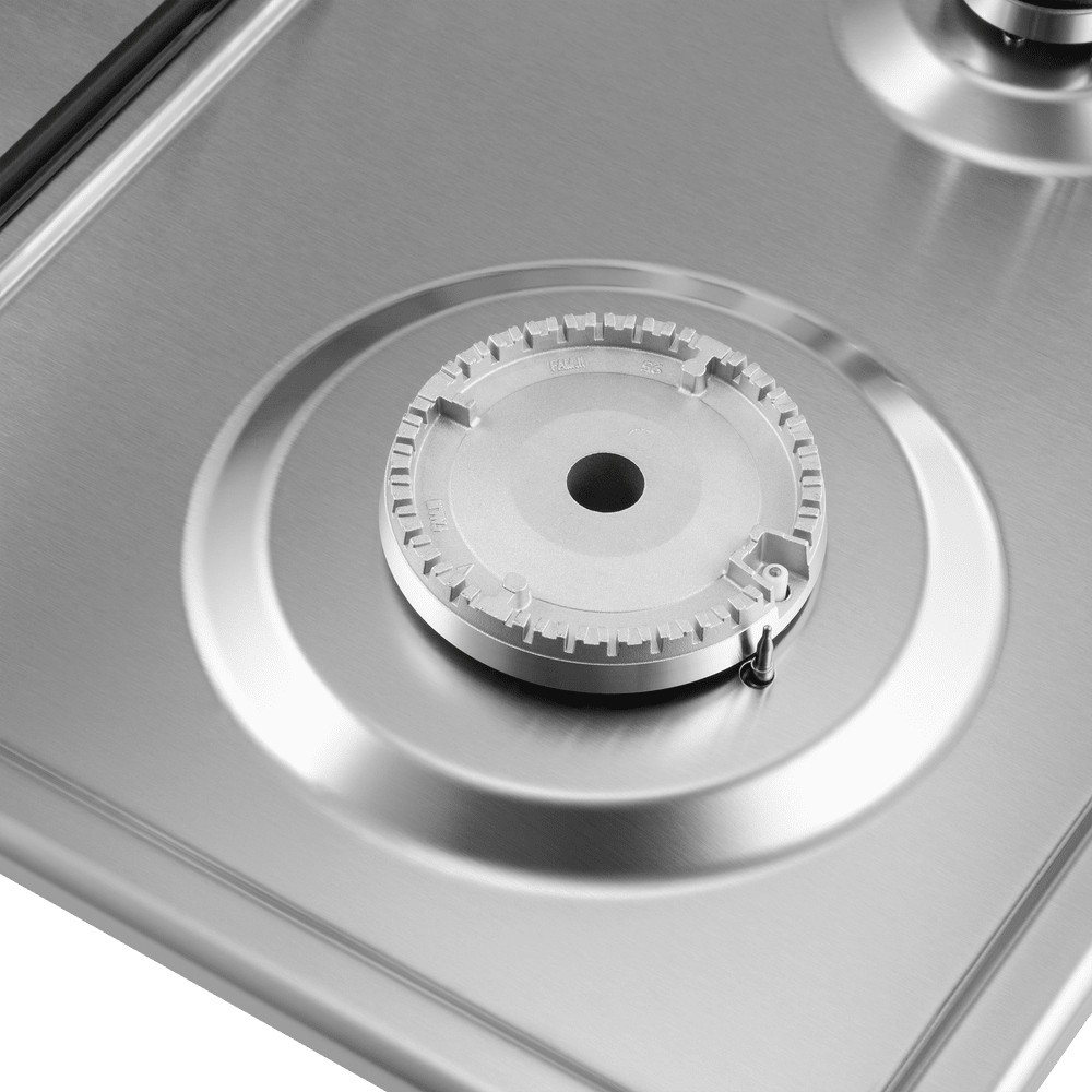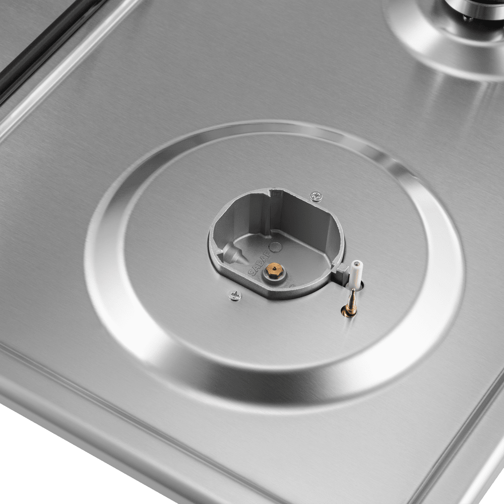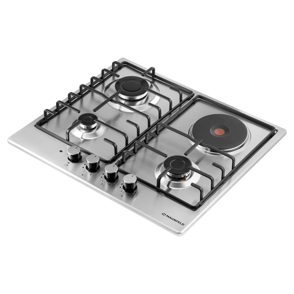 Универсальная встраиваемая комбинированная варочная панель выполнена из нержавеющей стали. Три газовые высококачественные итальянские горелки SABAF и одна электрическая чугунная HP RAPID конфорка.