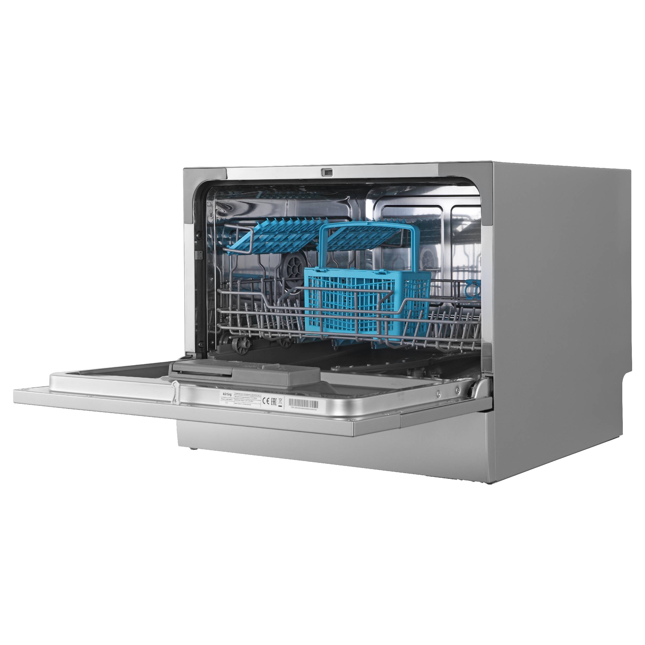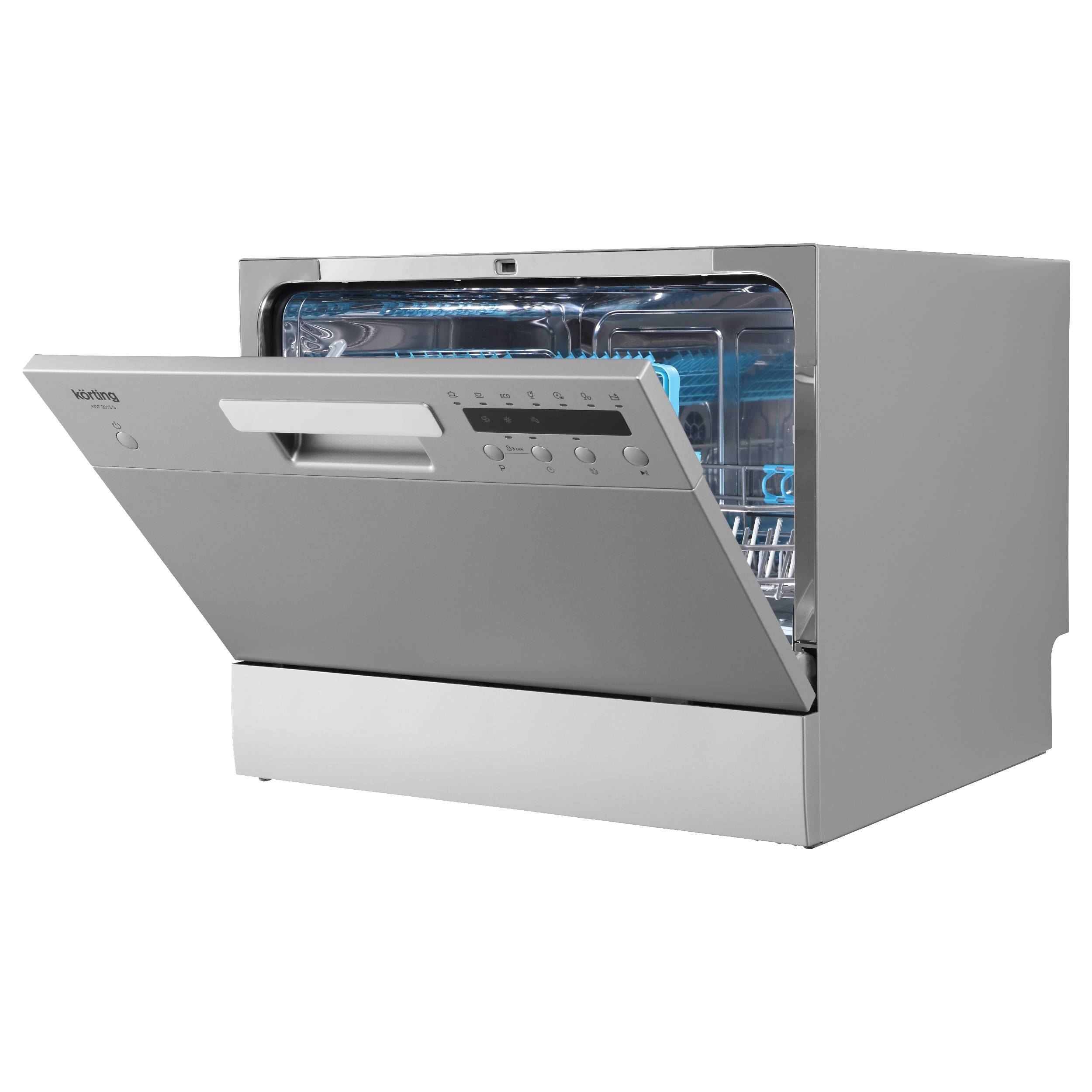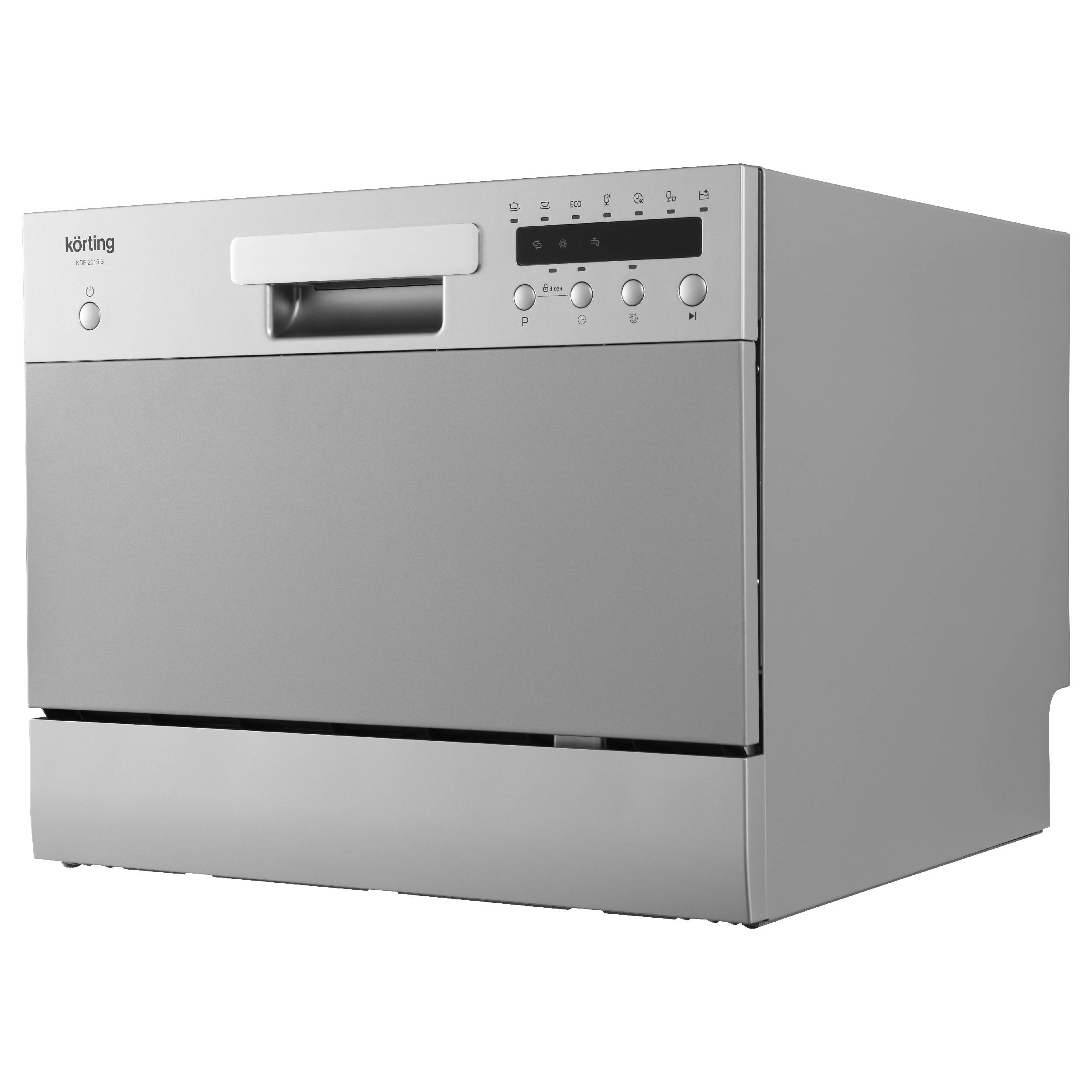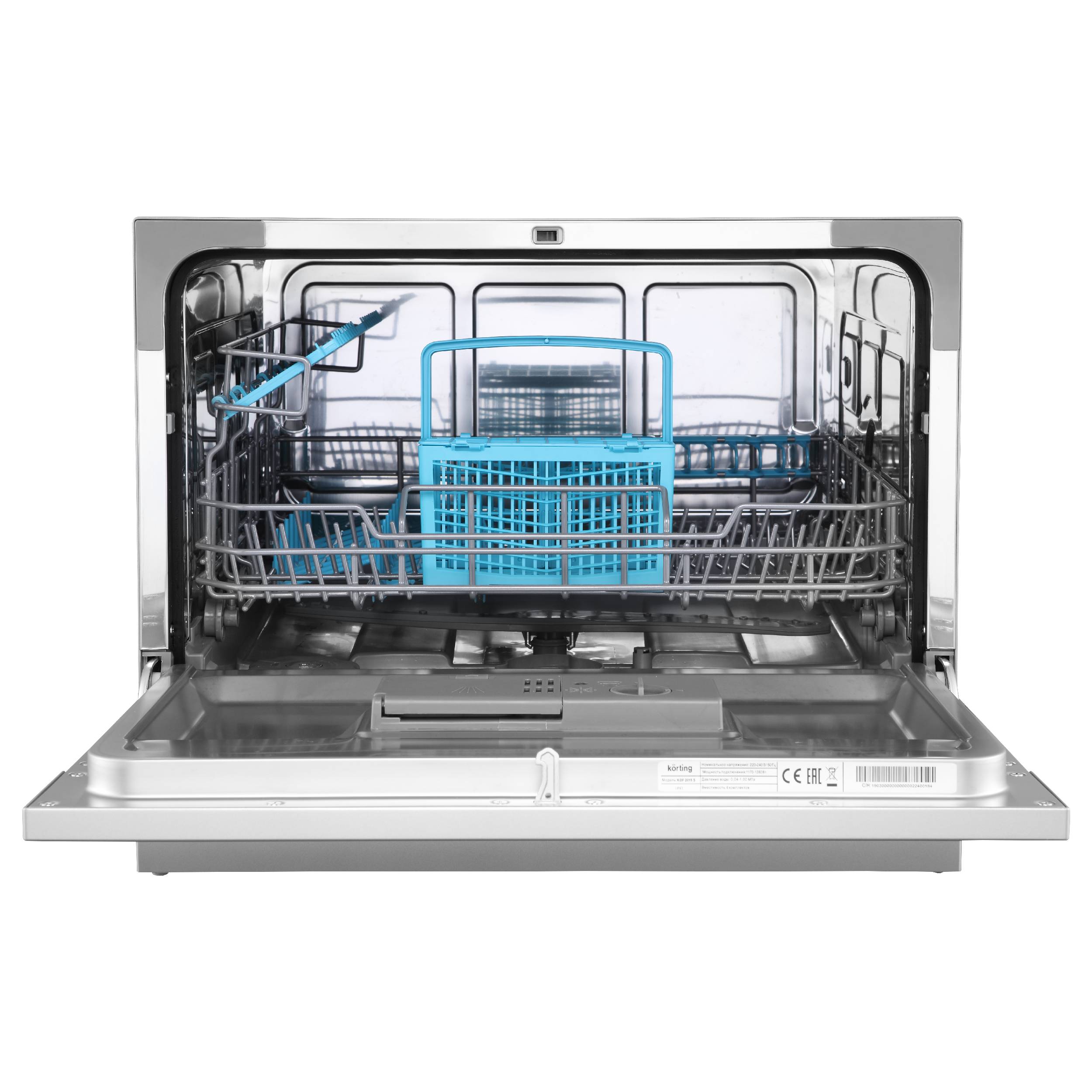 Компактные габариты Небольшие габариты компактной посудомоечной машины позволяют называть ее настольной и даже переносной. Небольшие размеры и легкость подключения помогут разместить прибор в любой части кухни где есть коммуникации и немного свободного места, например, под раковиной или внутри кухонной колонны. В любой момент времени прибор можно переставить или даже перевезти в другое место. 7 программ мойки 7 программ - это оптимальный набор режимов для мойки с любым типом посуды. Программа самоочистки Особая программа с необходимой продолжительностью и температурным режимом используется для очистки внутренних элементов посудомоечной машины, включая патрубки, очищая их от жиров и других загрязнений при использовании специальных средств. Вместительная камера на 6 комплектов Несмотря на компактные габариты, посудомоечная машина вмещает до 6 комплектов посуды. При такой вместительной камере нет необходимости мыть посуду самостоятельно. Система защиты от протечек «AquaControl» Система защиты от протечек «AquaControl» защитит Вас и Ваших соседей в случае возникновения протечки. Такая система защиты работает автономно без Вашего участия. Высокий класс энергоэффективности и низкие затраты ресурсов Новые технологии подачи и распределения потоков воды позволили улучшить качество мойки, при этом снизив продолжительность программ, а значит, сократить энергопотребление до минимума. Современные модели KÖRTING способны достигать невероятных результатов при минимальных затратах. Комбинированные моющие средства «All in 1» Современные моющие средства «таблетки» содержат все необходимые для работы средства: соль, ополаскиватель и само моющее средство. Алгоритм работы посудомоечных машин KÖRTING приспособлен к использованию подобных таблетированных средств, о чем свидетельствует соответствующая надпись на панели управления. Функция отложенного старта Процесс мойки посуды можно отложить на потом. Благодаря отложенному старту можно запрограммировать включение машинки, к примеру, на ночь.