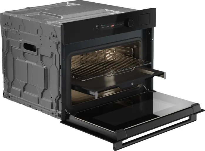 Духовой шкаф ASKO OCS54BGH из серии CRAFT сочетает лаконичный скандинавский стиль и продуманную инженерию. Передняя панель из чёрного стекла с узкой рамкой и скрытыми петлями гармонично впишется в современную кухню. Четырёхслойная дверца UltraCoolDoorQuadro+ остаётся прохладной снаружи, а съёмный стеклопакет облегчает уход; плавное открывание повышает удобство. Внутри — просторная камера 51 л с тремя уровнями и телескопическими направляющими на первом уровне. Двусторонняя галогенная подсветка обеспечивает отличную видимость, а Celsius Cooking™ даёт точность до 1°C. Управление — сенсорные поворотные элементы и цветной TFT‑дисплей; есть встроенный термощуп. Модель предлагает 10 режимов, включая AirFry, гриль, конвекцию, стерилизацию и функции для консервации, а паровая система с резервуаром 1,2 л имеет три уровня интенсивности. Внутренняя поверхность покрыта пиролитической эмалью, доступна гидролитическая очистка Aqua Clean; технология 360 Air Flow обеспечивает равномерный прогрев. Энергоэффективность класса A++.
