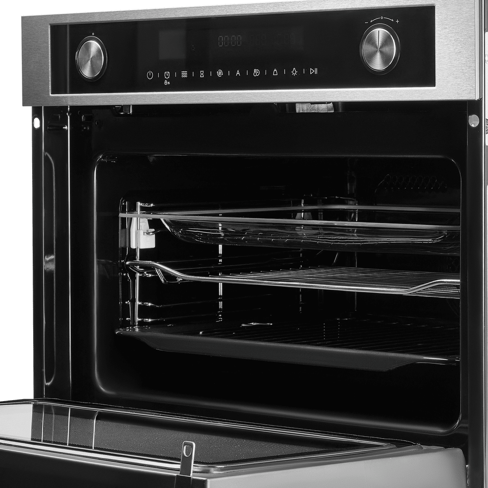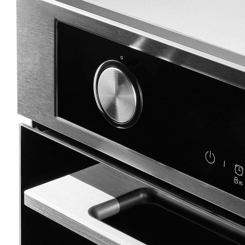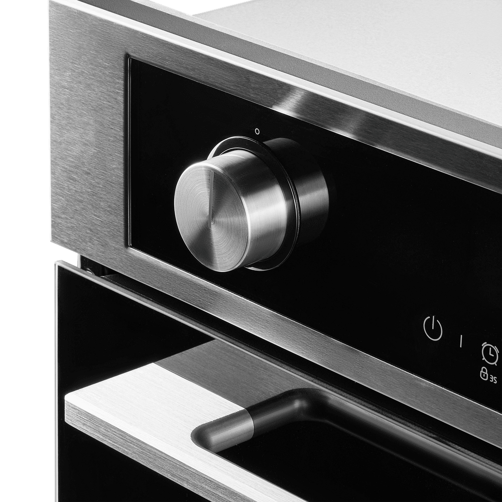 Компактный духовой шкаф с 15 режимами приготовления: полный функционал в компактном исполнении, с поворотными ручками PUSH PULL и сенсорными клавишами.
