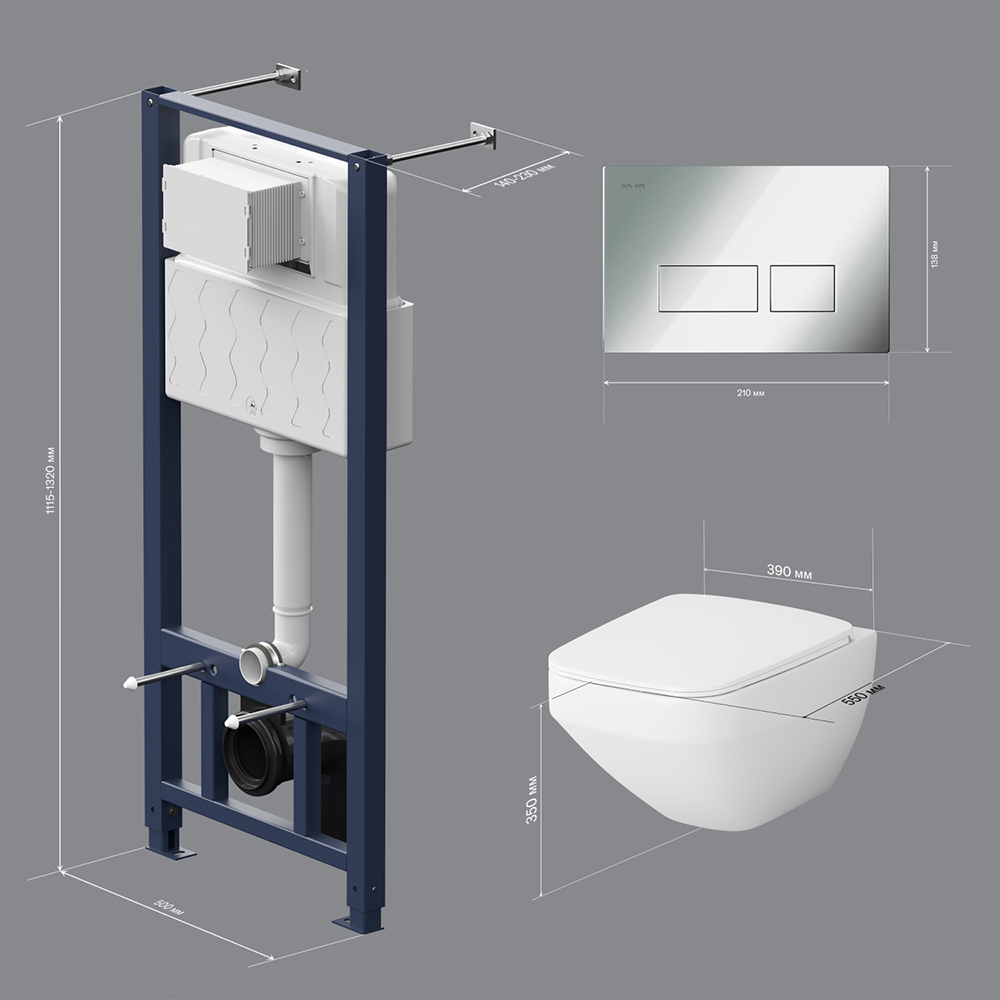 Полностью готовый к установке комплект: система инсталляции с клавишей подвесной унитаз сиденьем. Неразборная рама из стального профиля выдерживает нагрузку до 400 кг. Полностью изолированный бачок с качественной двухрежимной смывной арматурой - комфортное использование благодаря низкому уровню шума - менее 20 Дб. Укомплектован пневматической клавишей в цвете глянцевый хром. В комплекте все необходимые патрубки и крепления а также прокладка между унитазом и стеной - звукоизоляция. Современный дизайн и новая квадратная форма в керамике АМ.РМ. FlashClean — новое поколение безободковых унитазов без использования пластика: 100 % гигиеничности 0% брызг. Безупречная поверхность: изготовлен из стекловидного фарфора самого гигиеничного и влагостойкого материала с использованием форм последнего поколения. В комплекте быстросъемное сиденье из Дюропласта с функцией микролифт. Актуальный дизайн сиденья slim с однокнопочным механизмом быстрого снятия. ""