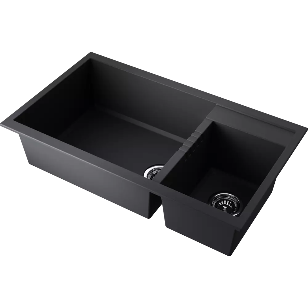 • Мойка черного цвета создана из материала «Tetogranit Metal». В его составе: акриловая смола и натуральный гранит с добавлением металлических частиц, которые придают блеск и мерцание поверхности мойки. «Tetogranit Metal» отличается максимальной устойчивостью к температурным перепадам, ударам, царапинам и пятнам;