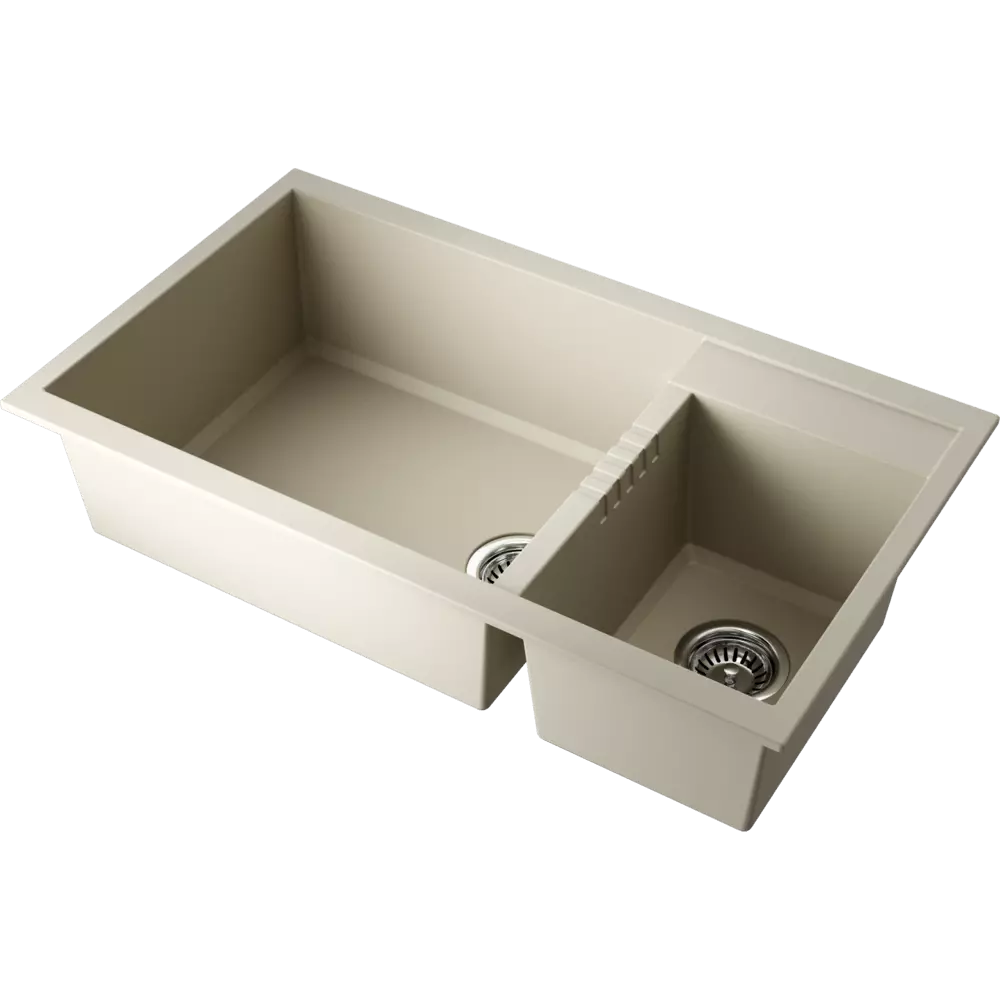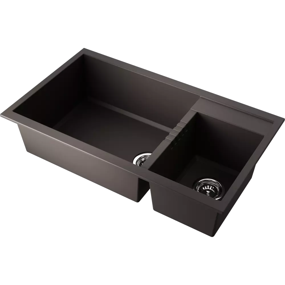 • Мойка черного цвета создана из материала «Tetogranit Metal». В его составе: акриловая смола и натуральный гранит с добавлением металлических частиц, которые придают блеск и мерцание поверхности мойки. «Tetogranit Metal» отличается максимальной устойчивостью к температурным перепадам, ударам, царапинам и пятнам;