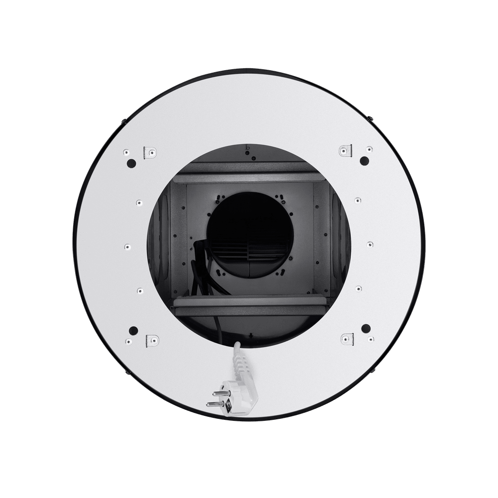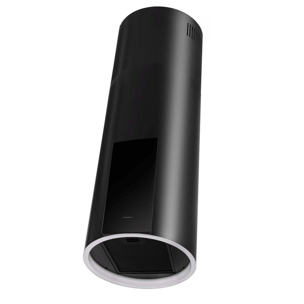 Уникальная вытяжка цилиндрической формы с возможностью изменения длины корпуса. Благодаря потолочному креплению может использоваться на островной кухне.