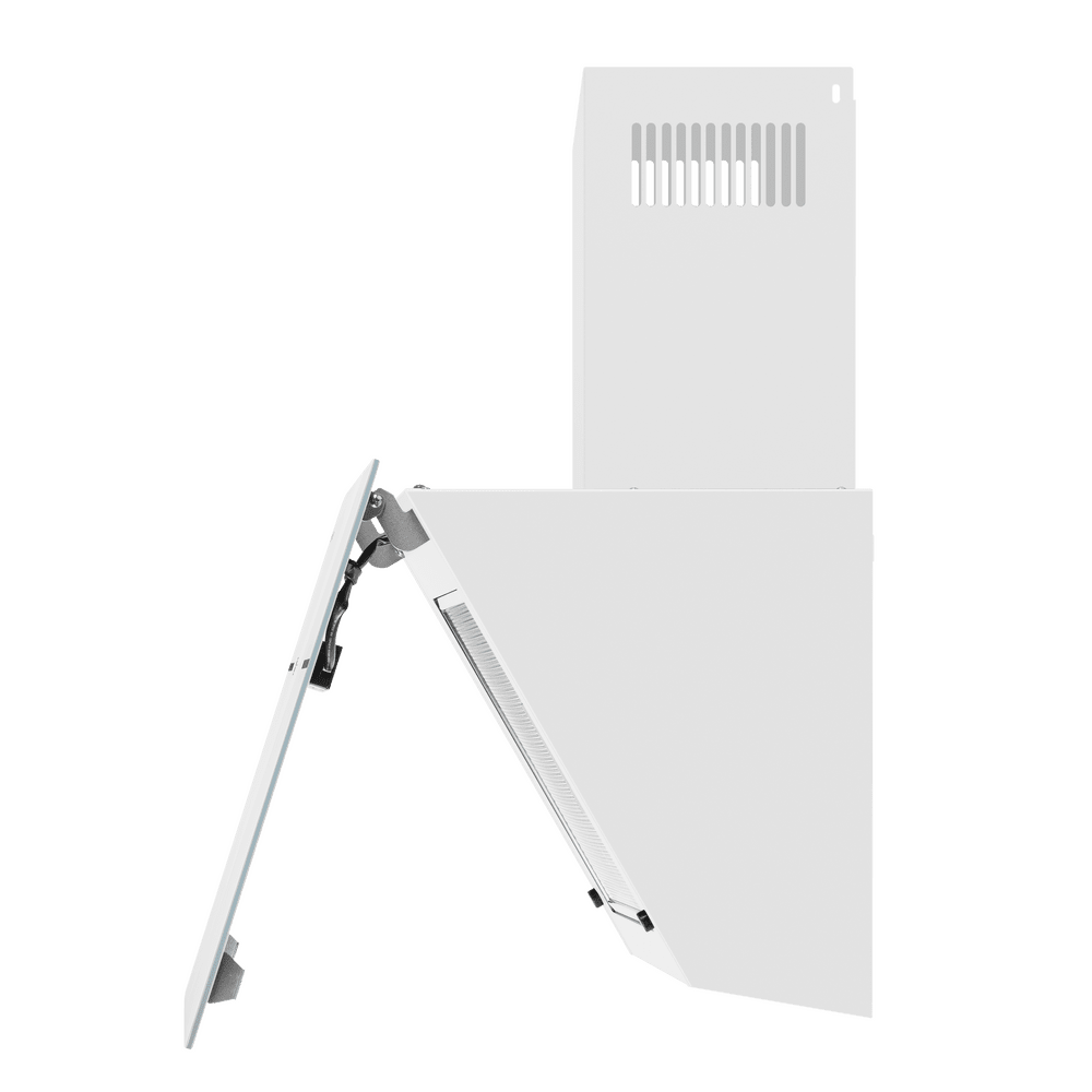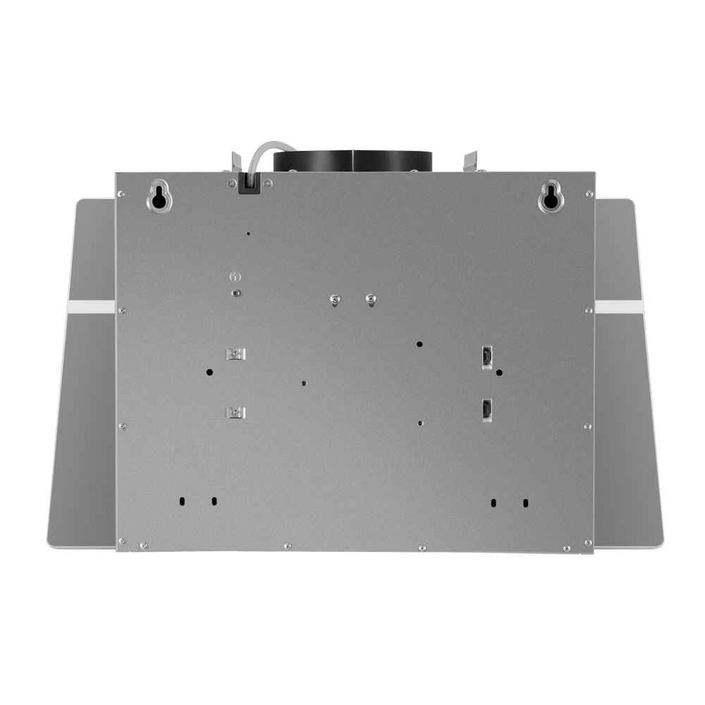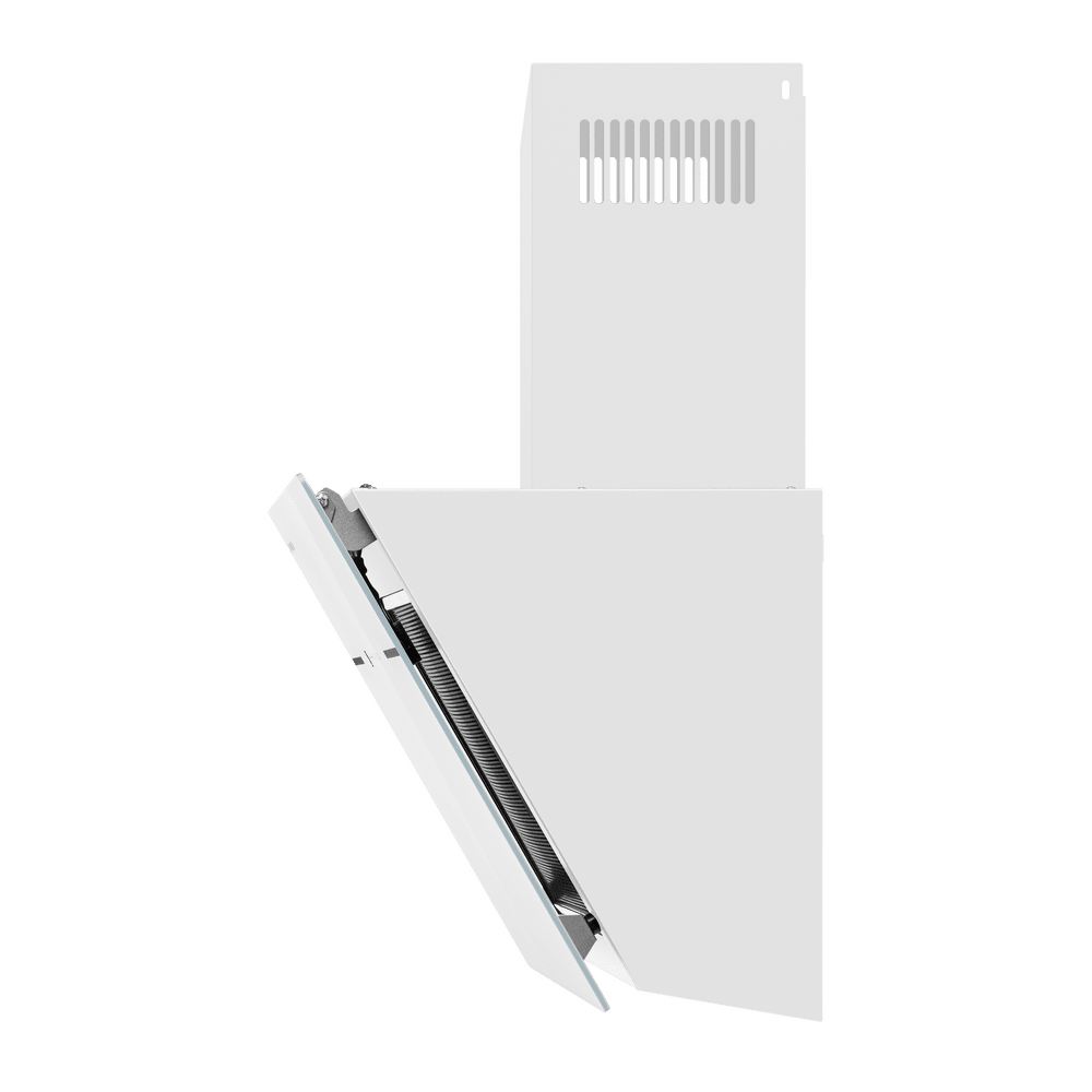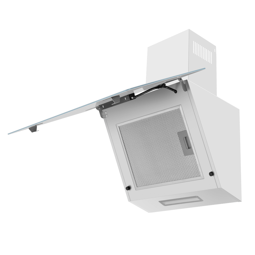 Элегантная наклонная вытяжка шириной 60 см для большой кухни. Фасад выполнен полностью из глянцевого закаленного стекла. Сенсорное управление для выбора режима работы и установки таймера.