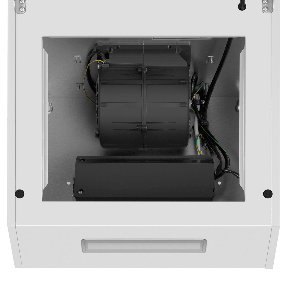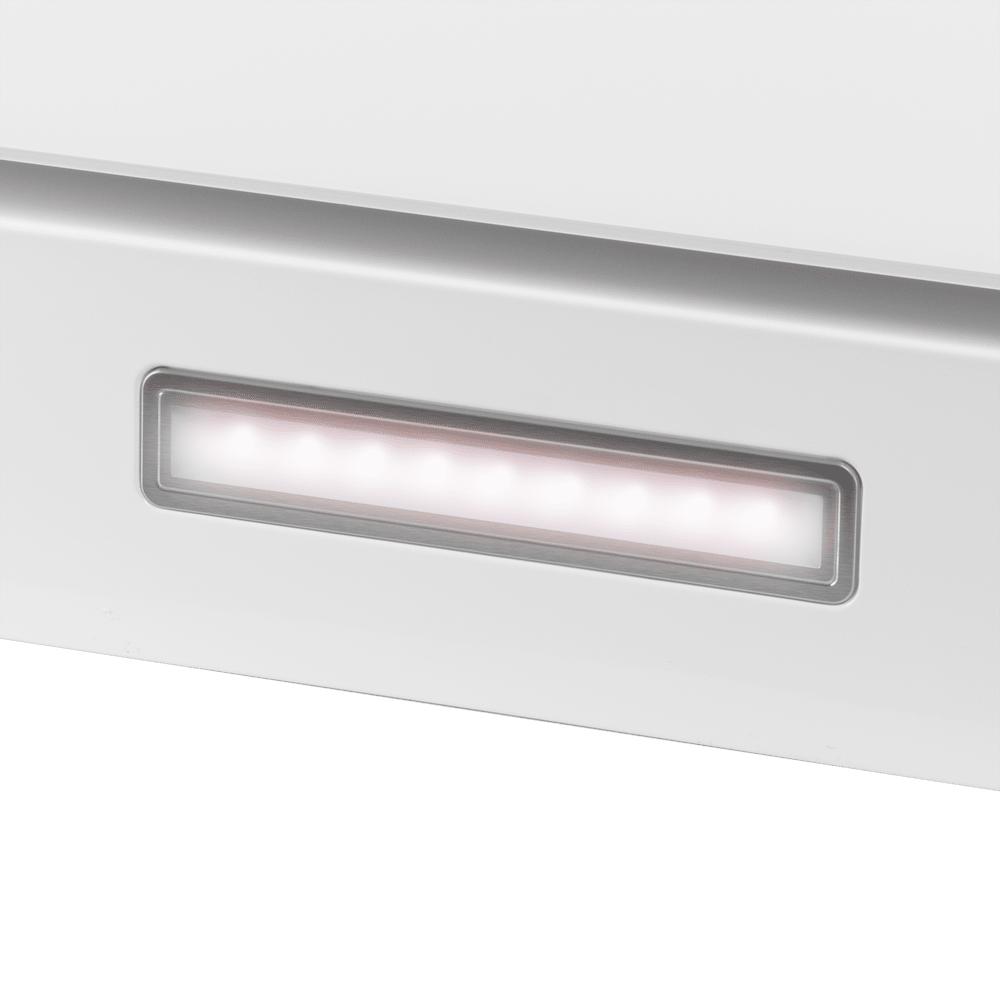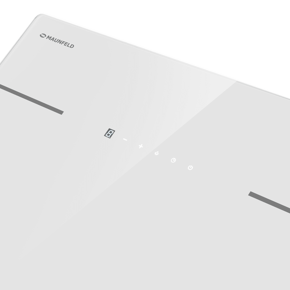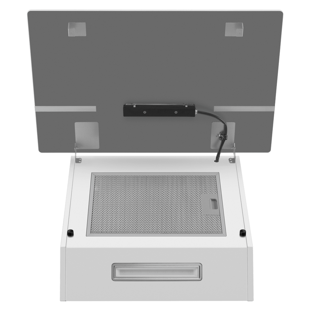 Элегантная наклонная вытяжка шириной 60 см для большой кухни. Фасад выполнен полностью из глянцевого закаленного стекла. Сенсорное управление для выбора режима работы и установки таймера.