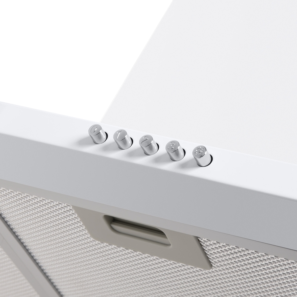 Классическая купольная кухонная вытяжка шириной 60 см. Большая площадь рабочей зоны, состоящей из двух фильтров, позволяет использовать ее на кухне большой площади.