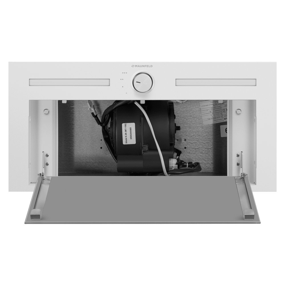 Элегантная встраиваемая вытяжка шириной 60 см предназначена для очистки воздуха в очень больших помещениях. Откидной фасад из закаленного стекла.