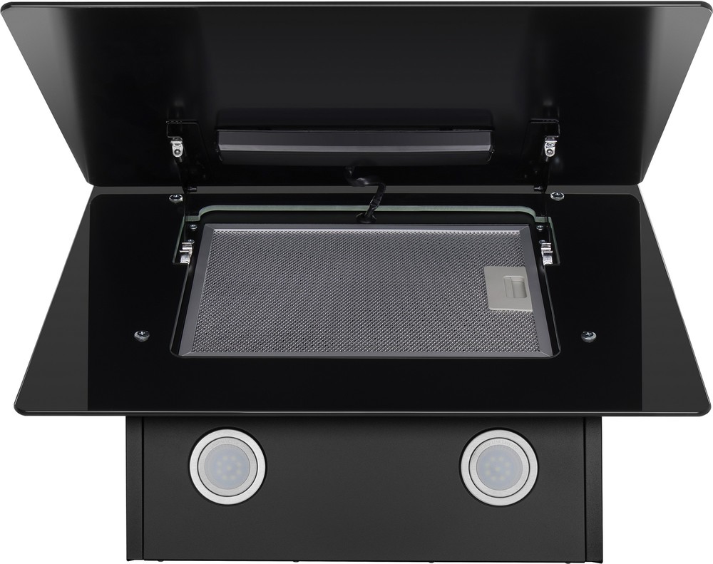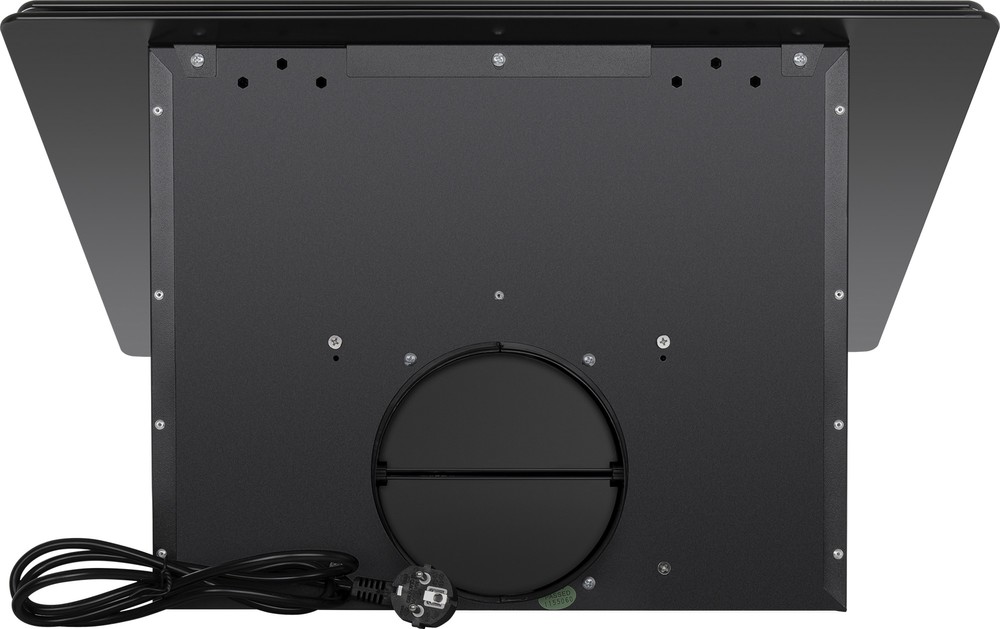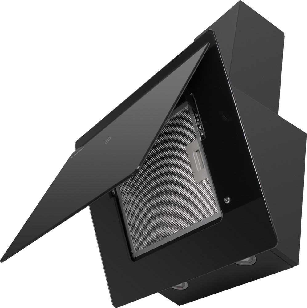 Мощная наклонная вытяжка шириной 60 см для очень большой кухни. Корпус сделан из эмалированной стали. Фасад выполнен из закаленного стекла со стеклянной крышкой. Сенсорное управление позволяет выбрать режим работы и установить таймер.