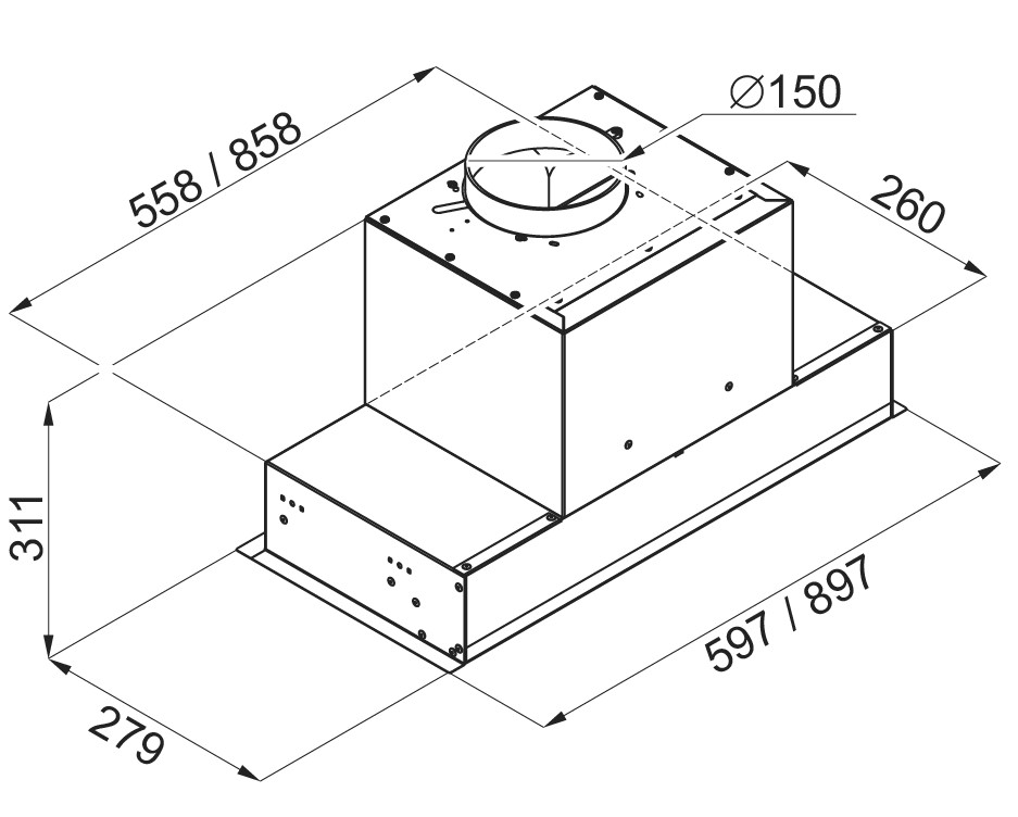 Ультрасовременная встраиваемая кухонная вытяжка шириной 60 см для кухни очень большой площади. Одним взмахом руки вы можете выбрать режим работы или включить освещение.