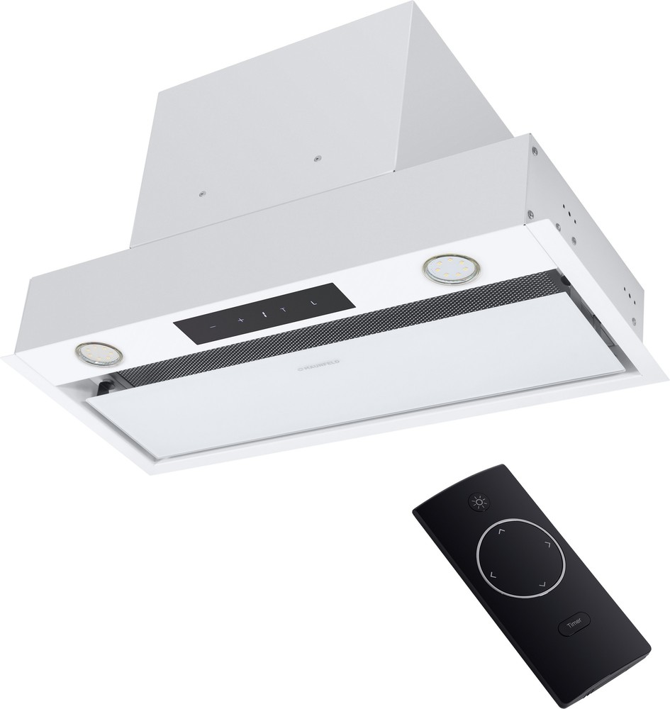 Элегантная кухонная вытяжка шириной 60 см - прекрасный выбор для большой кухни. Откидная панель из глянцевого закаленного стекла. Сенсорное управление с дистанционным пультом.