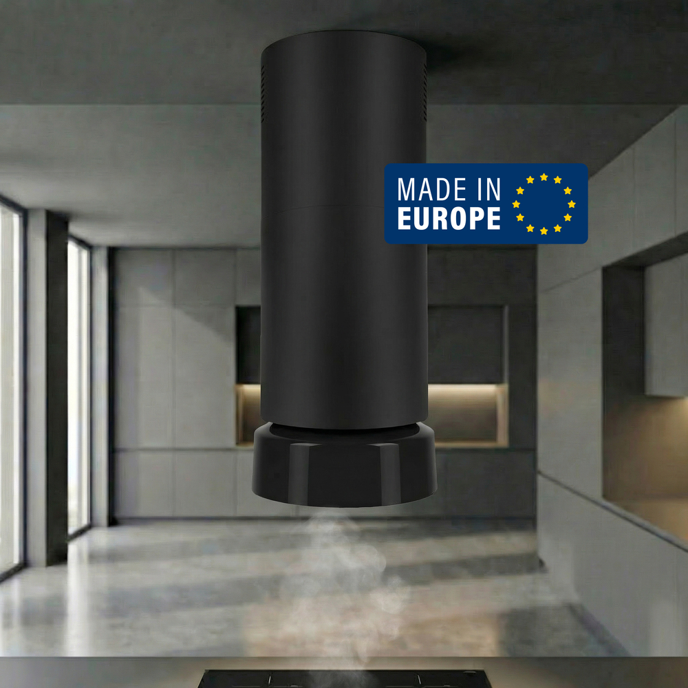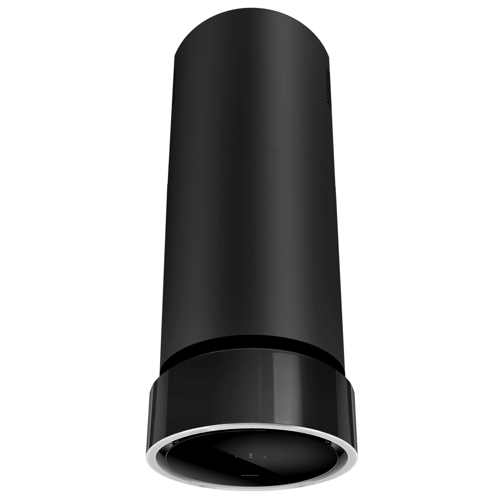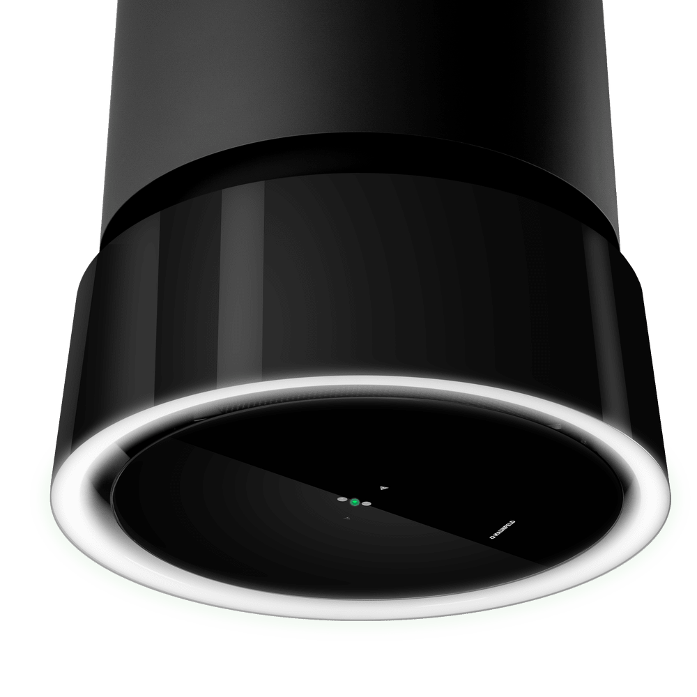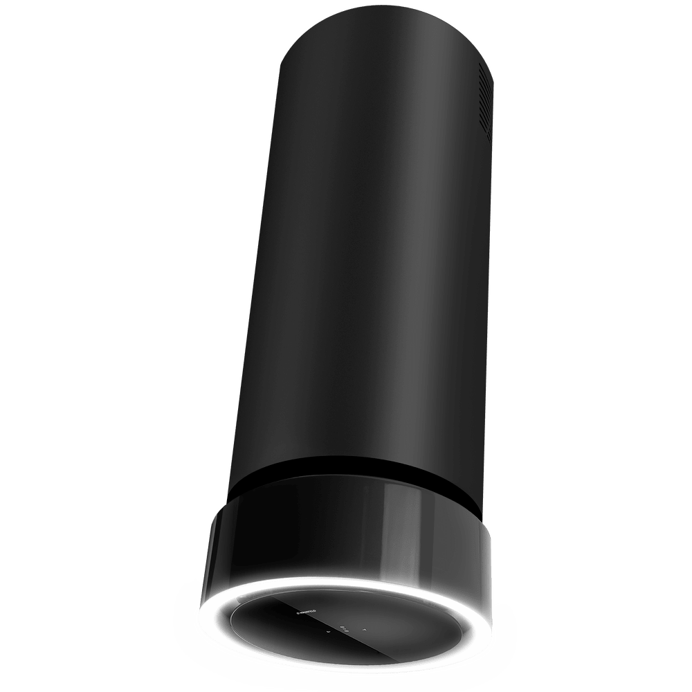 Островная дизайнерская вытяжка сочетает матовые и блестящие металлические поверхности, создавая выразительный акцент в интерьере. Устройство отличается высокой производительностью и оснащено системой управления жестами: для включения, выключения или регулировки режимов достаточно провести рукой.
