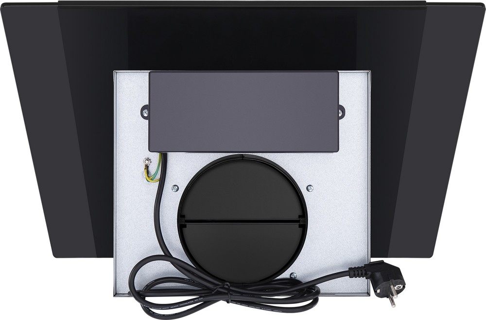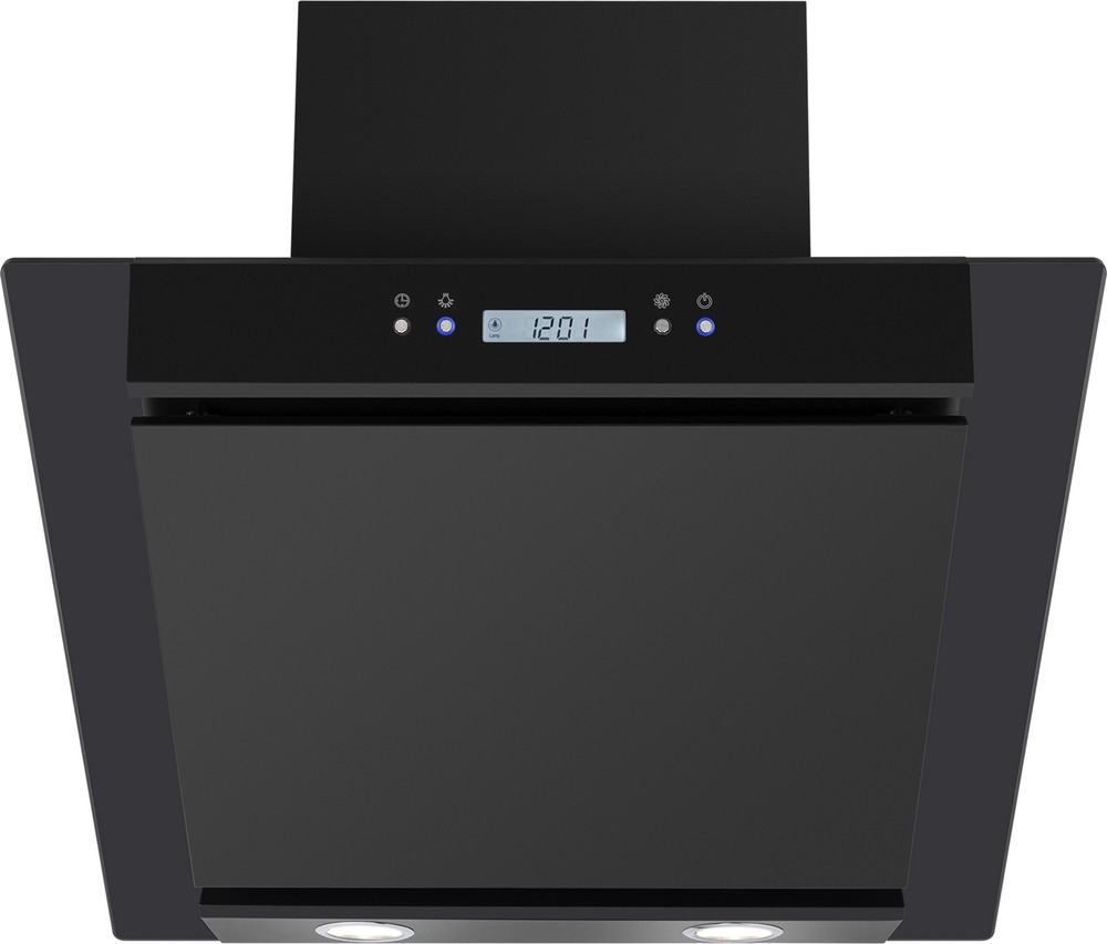 Стильная наклонная вытяжка для большой кухни выполнена из нержавеющей стали. Элегантные боковые вставки из закаленного стекла. Электронное управление с дисплеем.