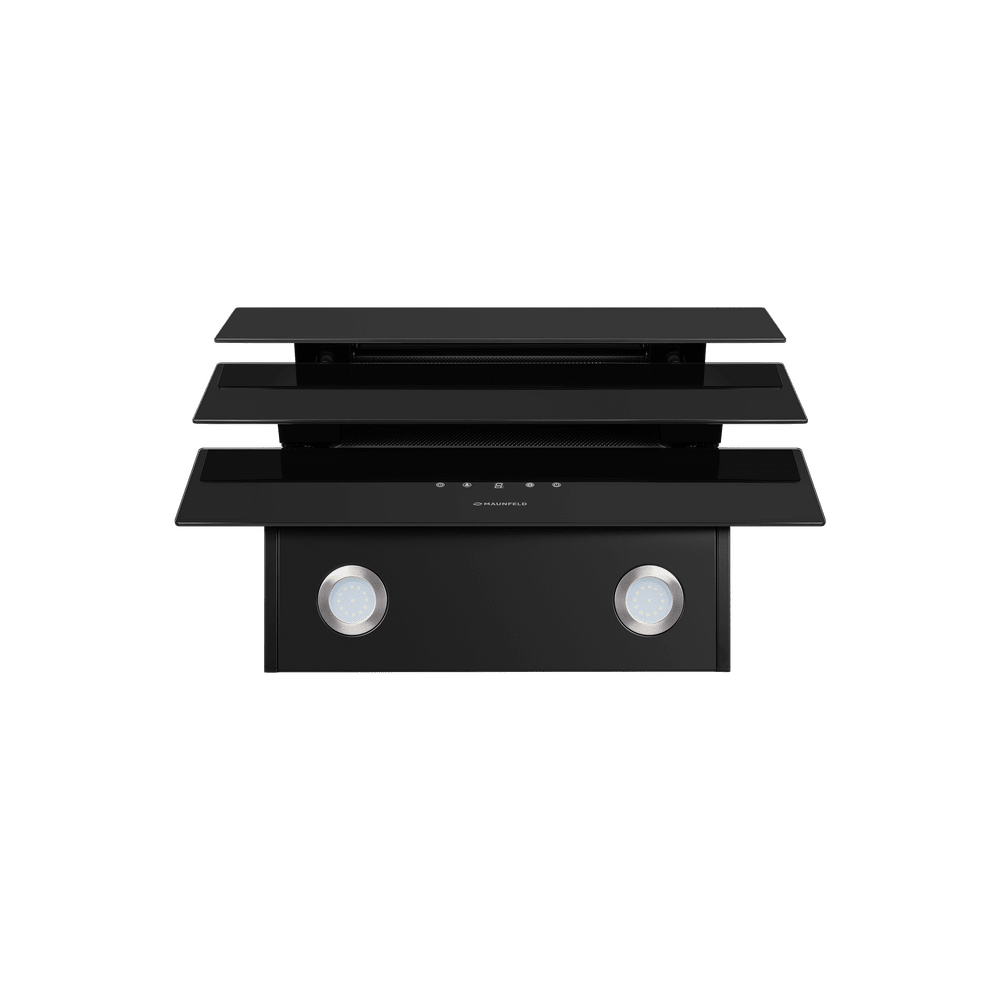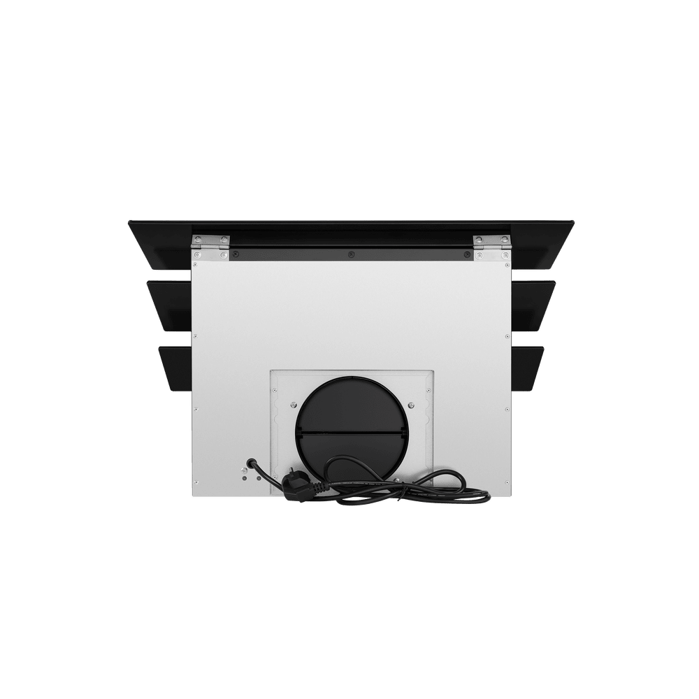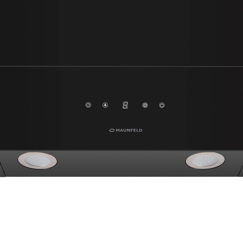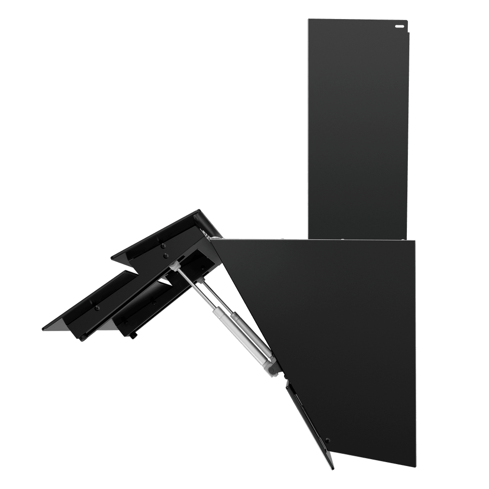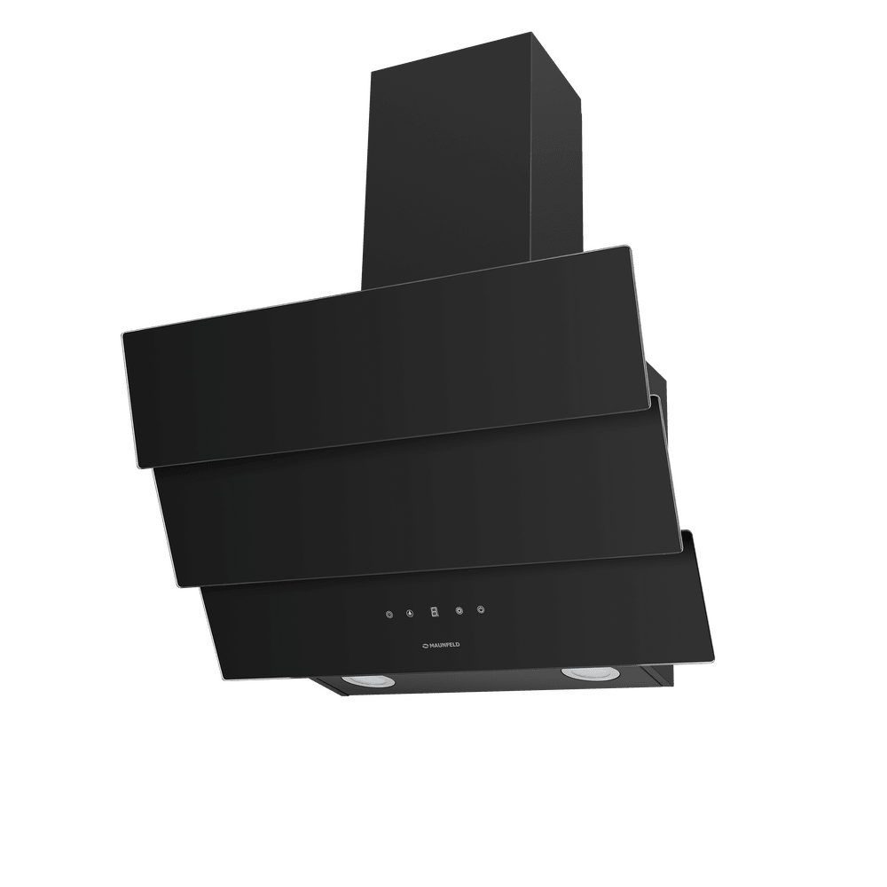 Стильная наклонная вытяжка шириной 60 см с корпусом из нержавеющей стали и дизайнерским фасадом из каскада трех сверхпрочных закаленных стекол. Сенсорное управление с дисплеем.