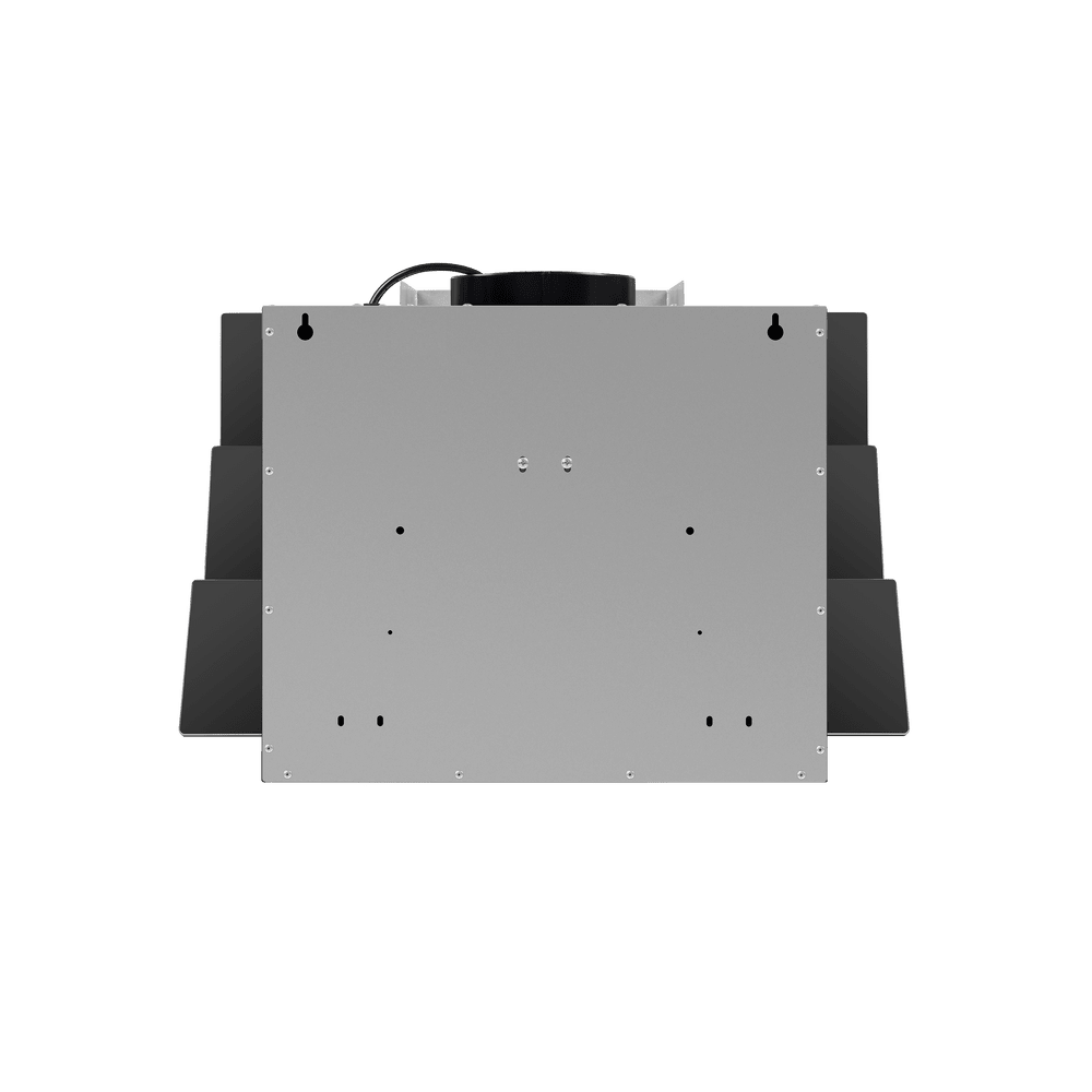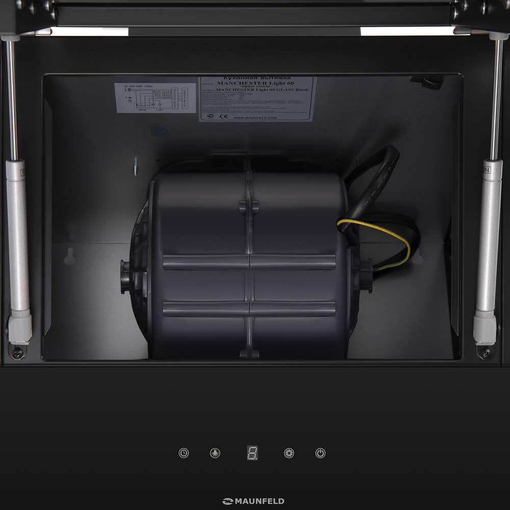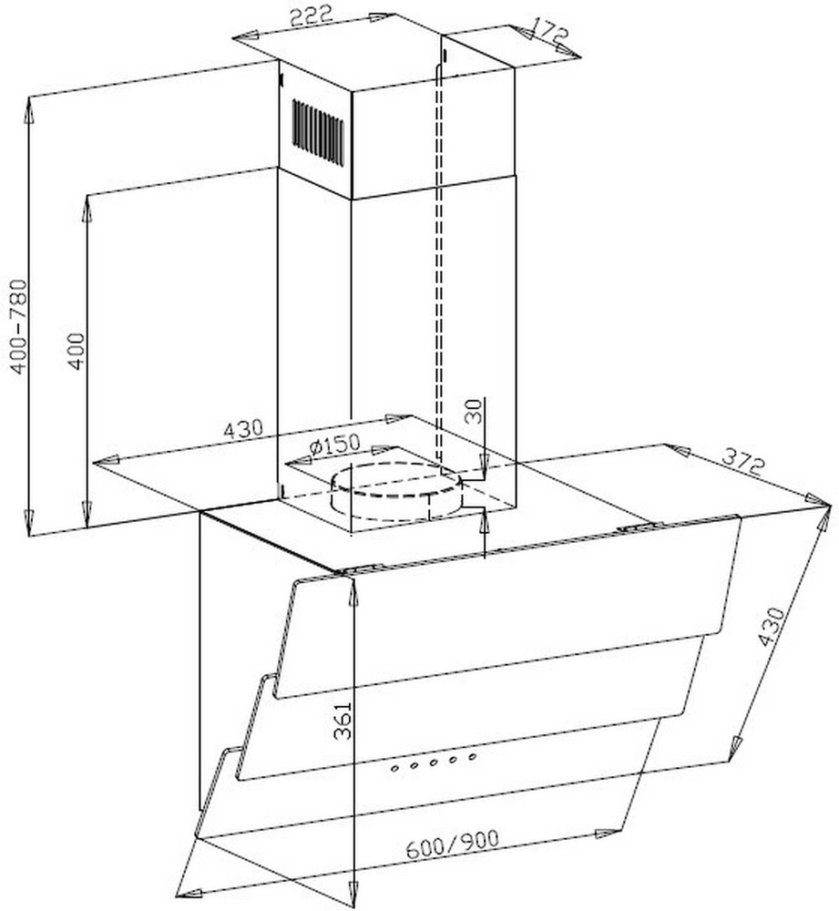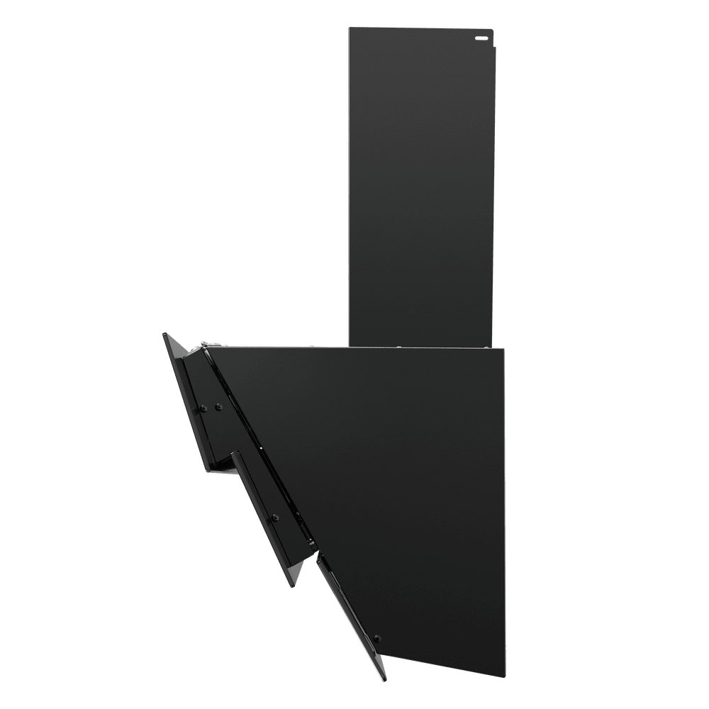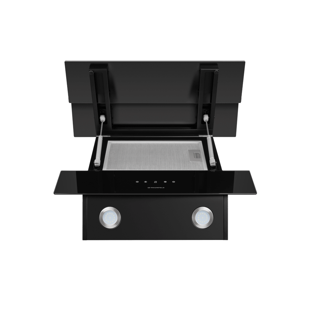 Стильная наклонная вытяжка шириной 60 см с корпусом из нержавеющей стали и дизайнерским фасадом из каскада трех сверхпрочных закаленных стекол. Сенсорное управление с дисплеем.