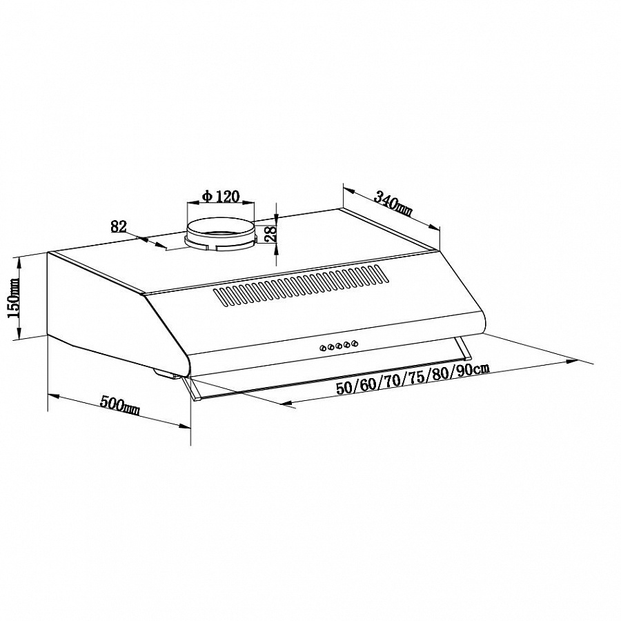 Классическая подвесная кухонная вытяжка шириной 60 см выполнена из нержавеющей стали. Стеклянный козырек и два жироулавливающих фильтра позволяют увеличить площадь рабочей зоны.