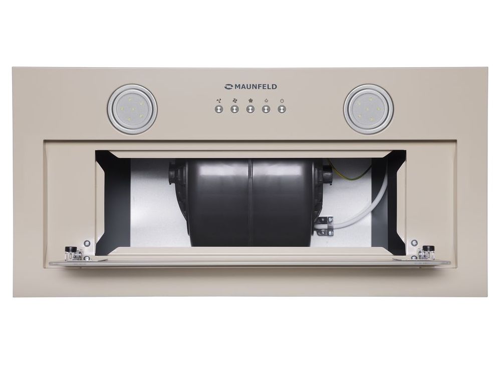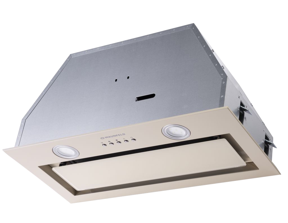 Мощная встраиваемая вытяжка шириной 60 см. Фронтальная панель из нержавеющей стали и откидной панелью из закаленного стекла.