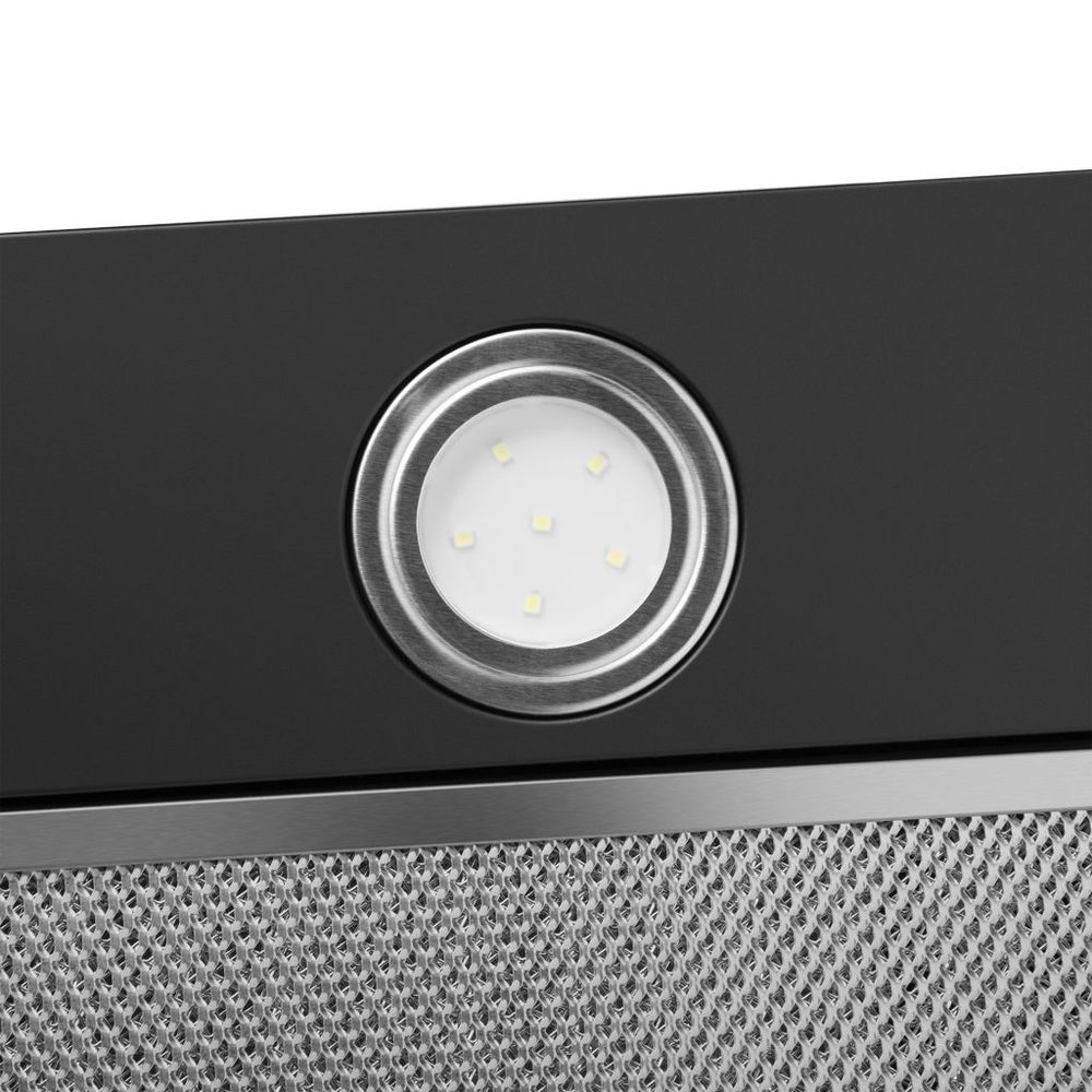 Мощная встраиваемая вытяжка шириной 60 см выполнена из нержавеющей стали. Электронное управление и LED подсветка.