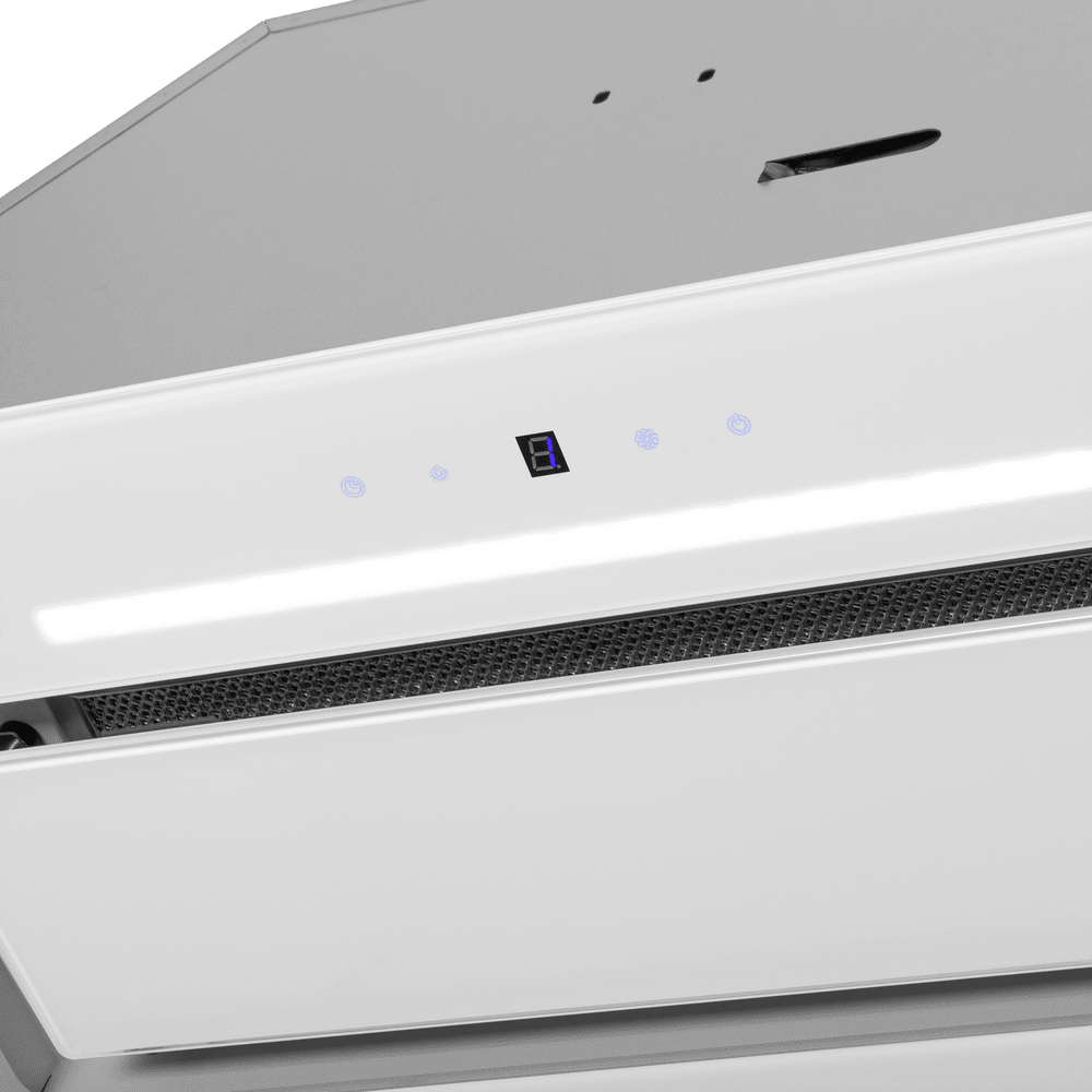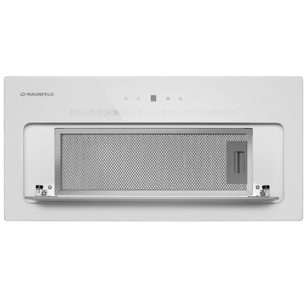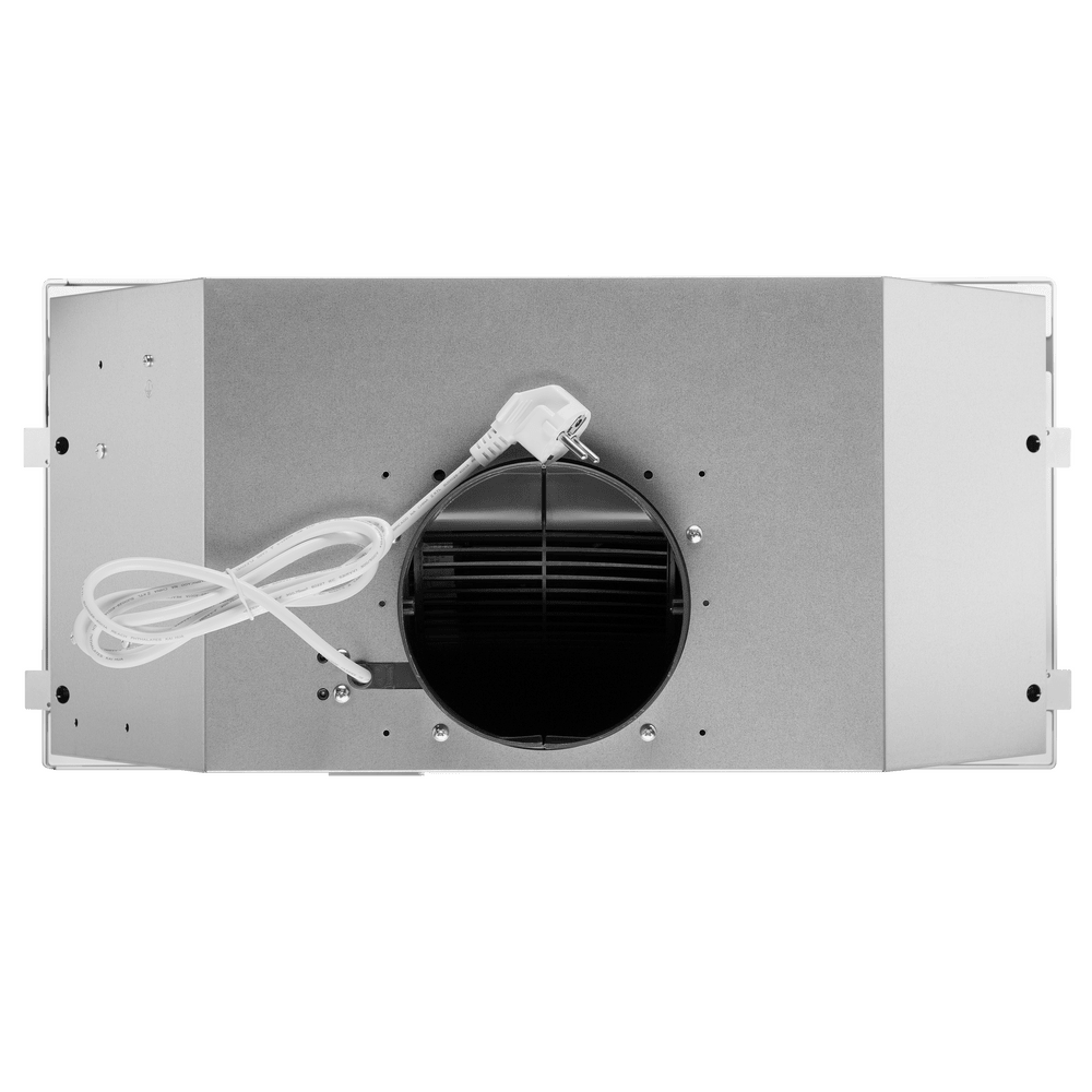 Мощная встраиваемая вытяжка шириной 60 см, фасад выполнен из прочного закаленного стекла. Встроенный таймер и выбор из нескольких уровней мощности.