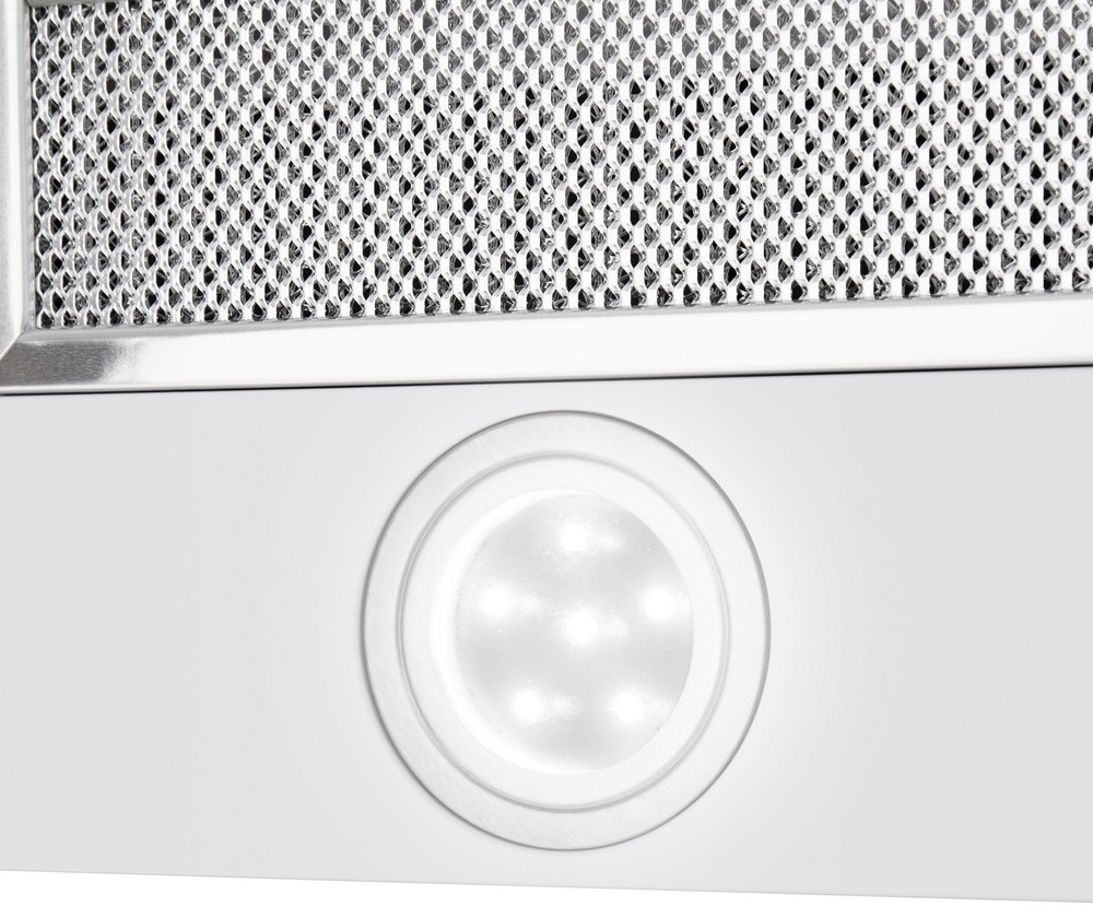 Компактная встраиваемая вытяжка шириной 50 см прекрасно подходит для большой кухни. Телескопический козырек с дополнительным алюминиевым жироулавливающим фильтром.