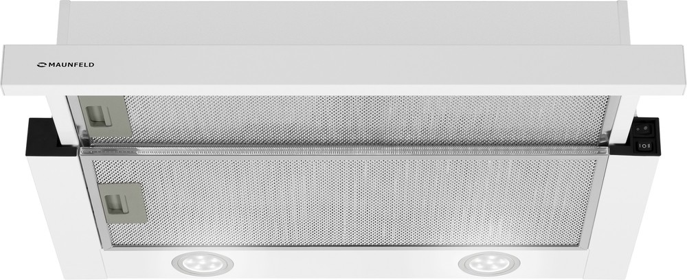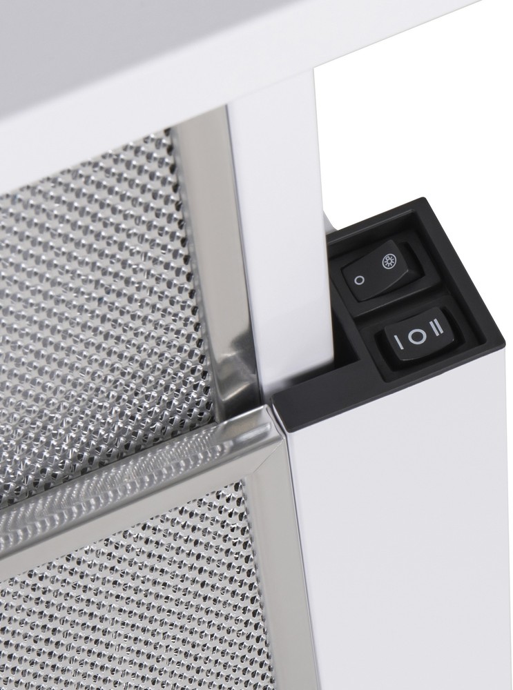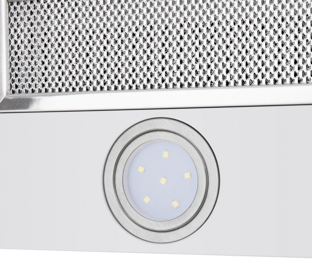Классическая встраиваемая вытяжка шириной 60 см выполнена из нержавеющей стали. Телескопический козырек с дополнительным алюминиевым жироулавливающим фильтром.