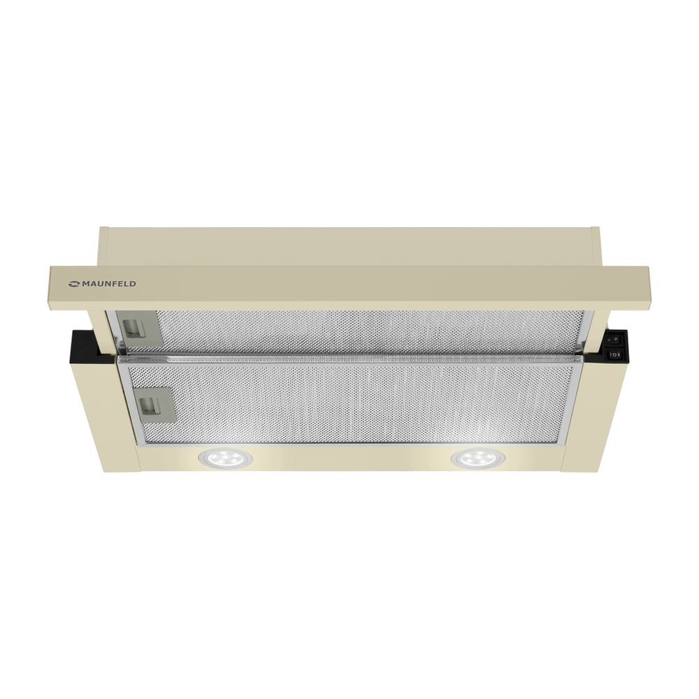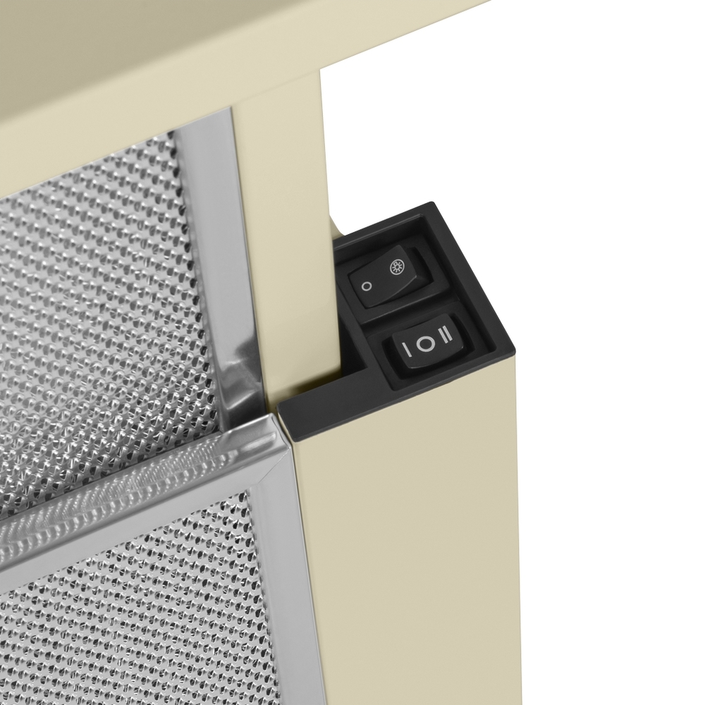 Классическая встраиваемая вытяжка шириной 60 см выполнена из нержавеющей стали. Телескопический козырек с дополнительным алюминиевым жироулавливающим фильтром.