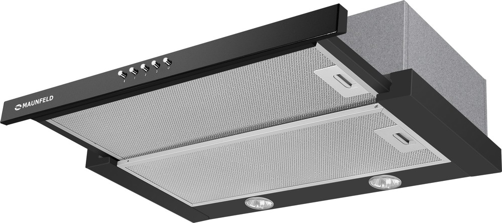 Встраиваемая вытяжка шириной 60 см прекрасно подходит для большой кухни. Телескопический козырек с дополнительным алюминиевым жироулавливающим фильтром.